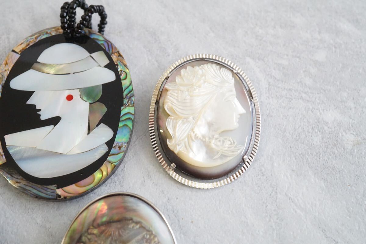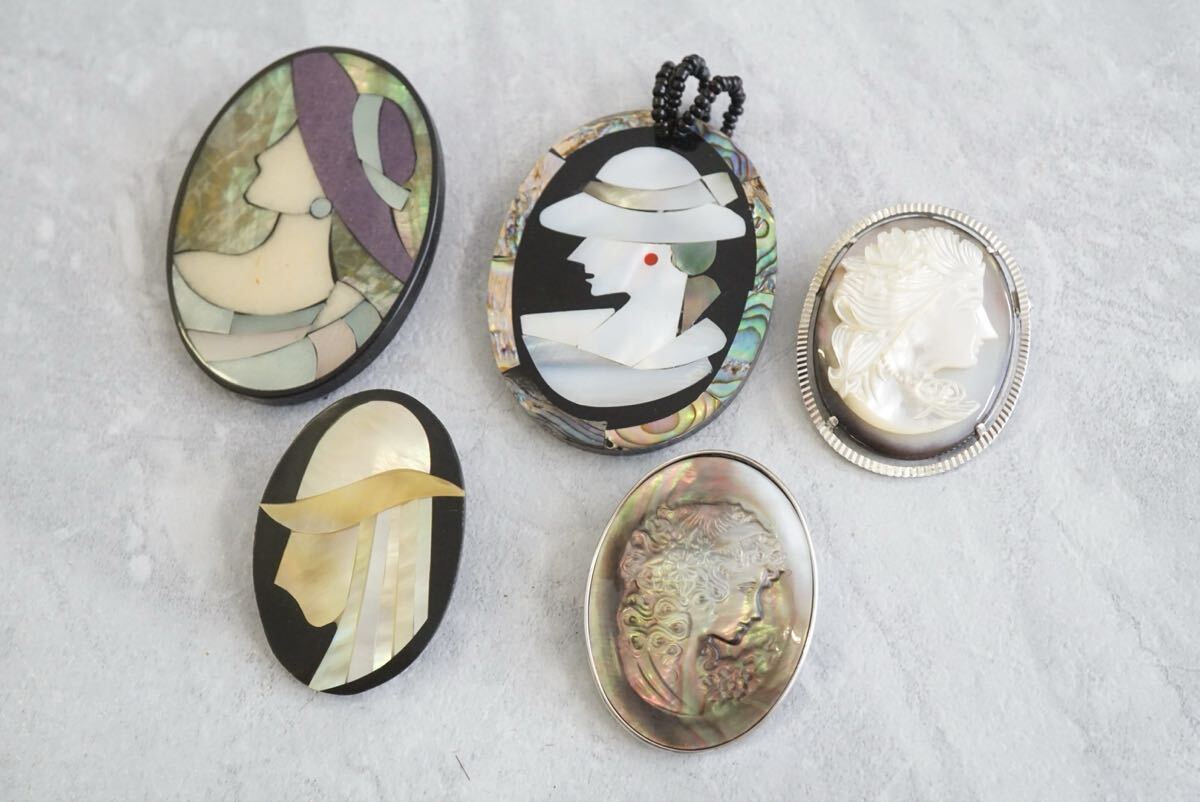 B241 シェル 人像 カメオ アクセサリー ブローチ ペンダント 5点セット 大量 まとめて おまとめ まとめ売り 貝 貴婦人 ヴィンテージ
