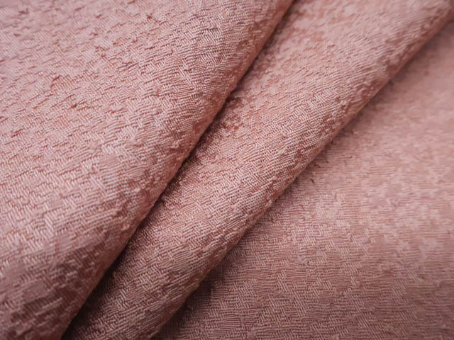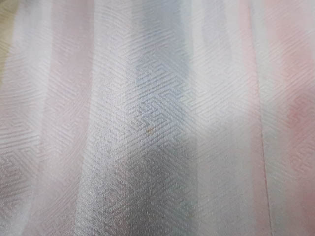 リサイクル商品のため、羽裏に薄いシミがございますがご着用いただけると存じます。 地色は、ピンクです。 1枚目の画像が近いお色かと思われます。 素材は正絹です。 |