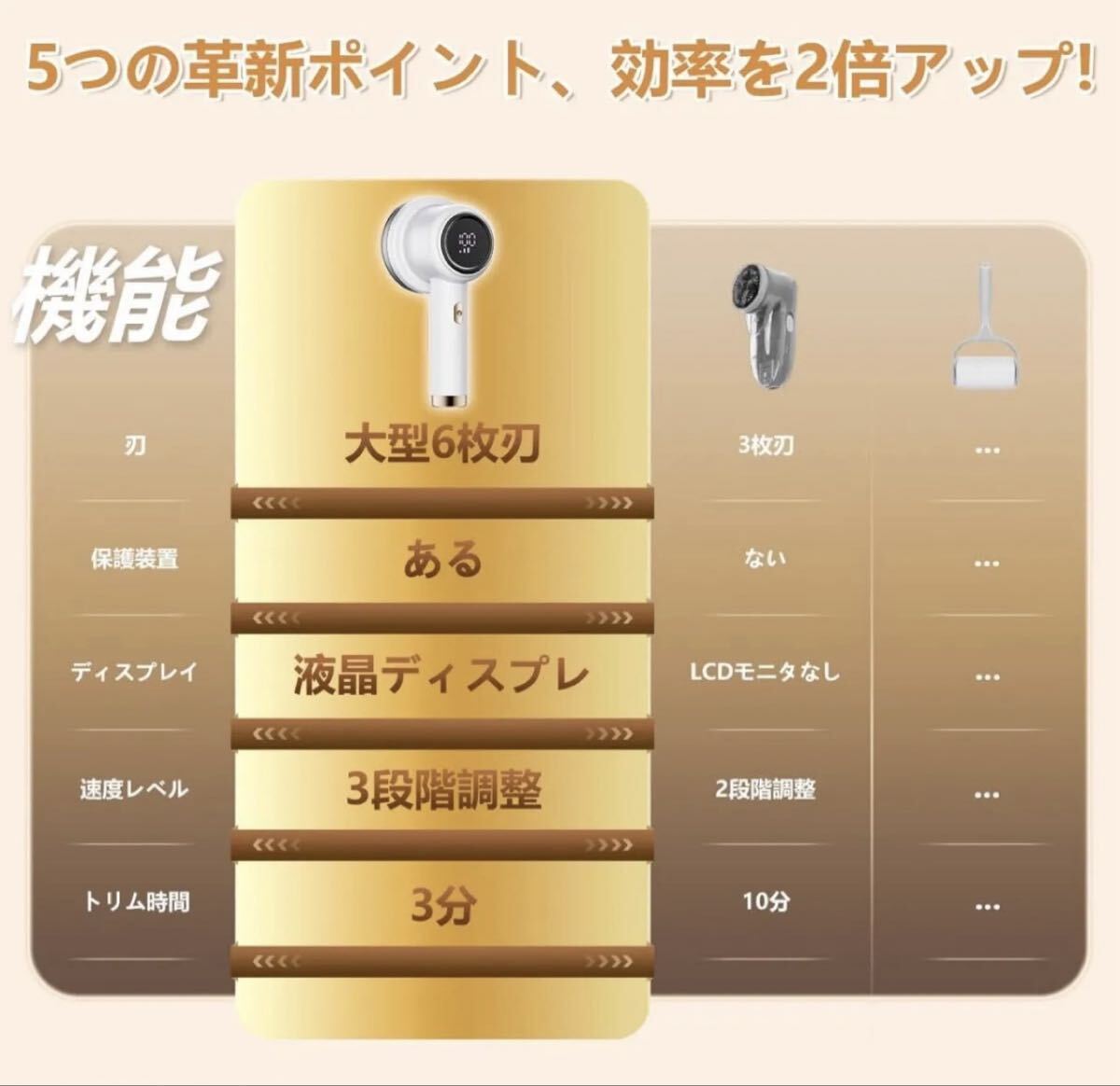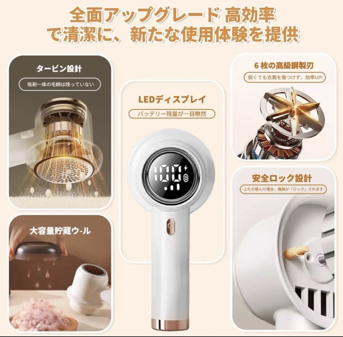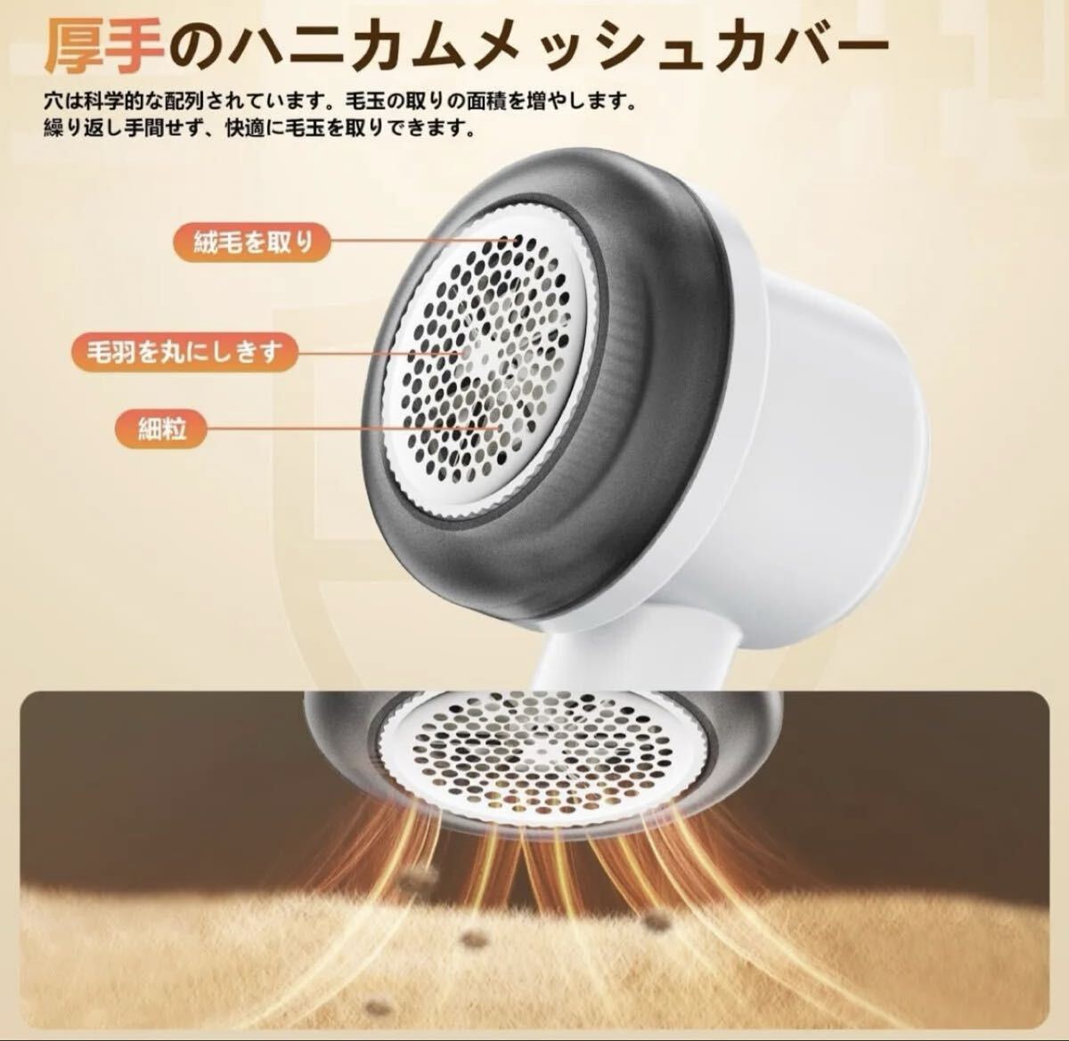 【高速回転 & 6 枚刃】この毛玉取り器は高速回転モーターを搭載し、最高回転数は 11,000rpm に達します。6 枚の強力ステンレス刃が備わり、切断性能は卓越しており、毛玉だけでなく衣類の繊維くずも除去し、お洋服をまるで新品のように蘇らせます!日常の生活に欠かせない毛玉取り器です。