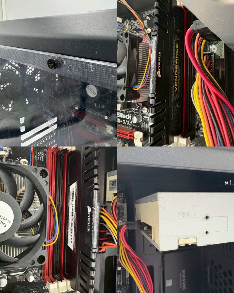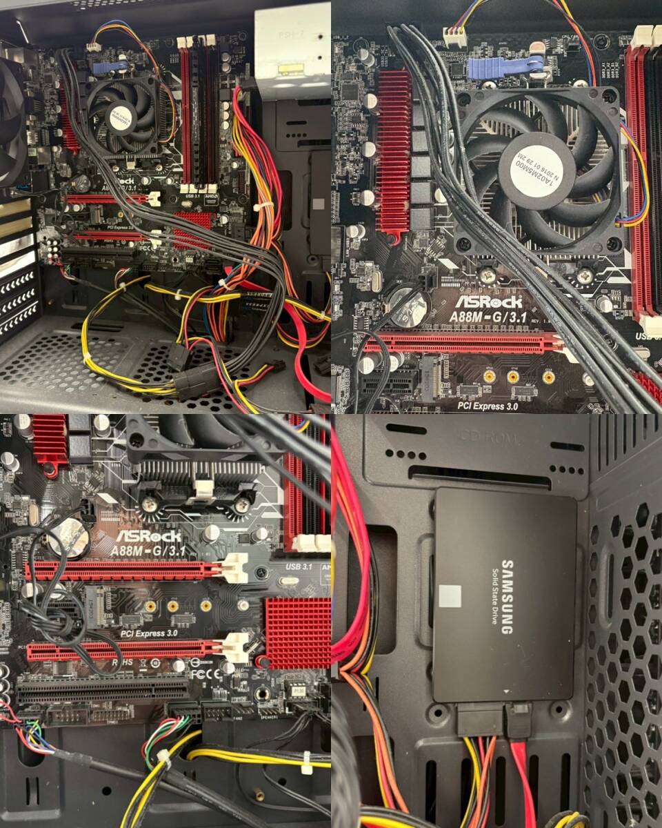 マザーボードは「ASRock A88M-G/3.1」、CPUクーラー&Samsung SSD搭載、Corsair Vengeanceメモリも2枚実装されています(詳細スペックは画像にてご確認ください)。