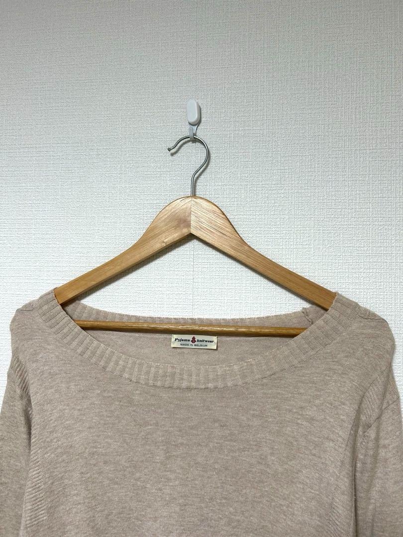 ベルギー製 pyjama knit wearのコットンセーター。衿幅の広いワイドネック、薄いコットン生地です。