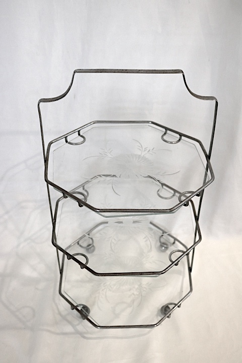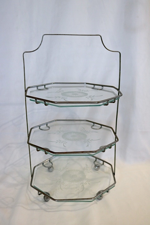 SALE !!3段のアフタヌーンティートレイ、手彫り模様/アンティーク