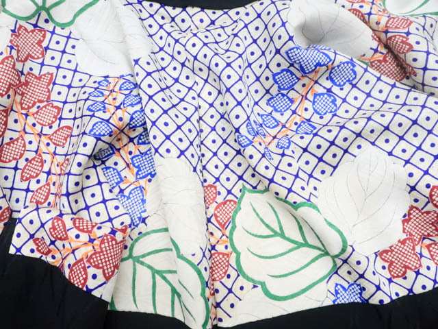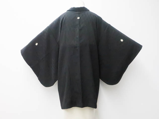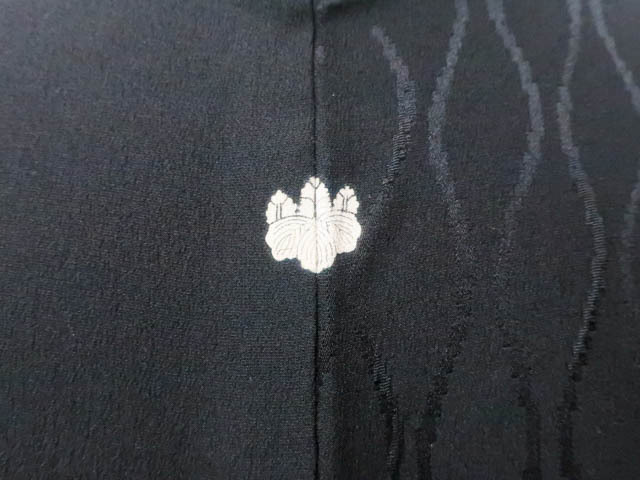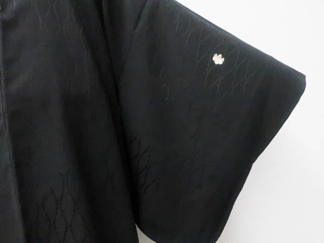 リサイクル商品のため、羽裏に薄しみがございますがご着用いただけると存じます。 地色は 黒です。 1枚目の画像が近いお色かと思われます。 素材は正絹です。 |