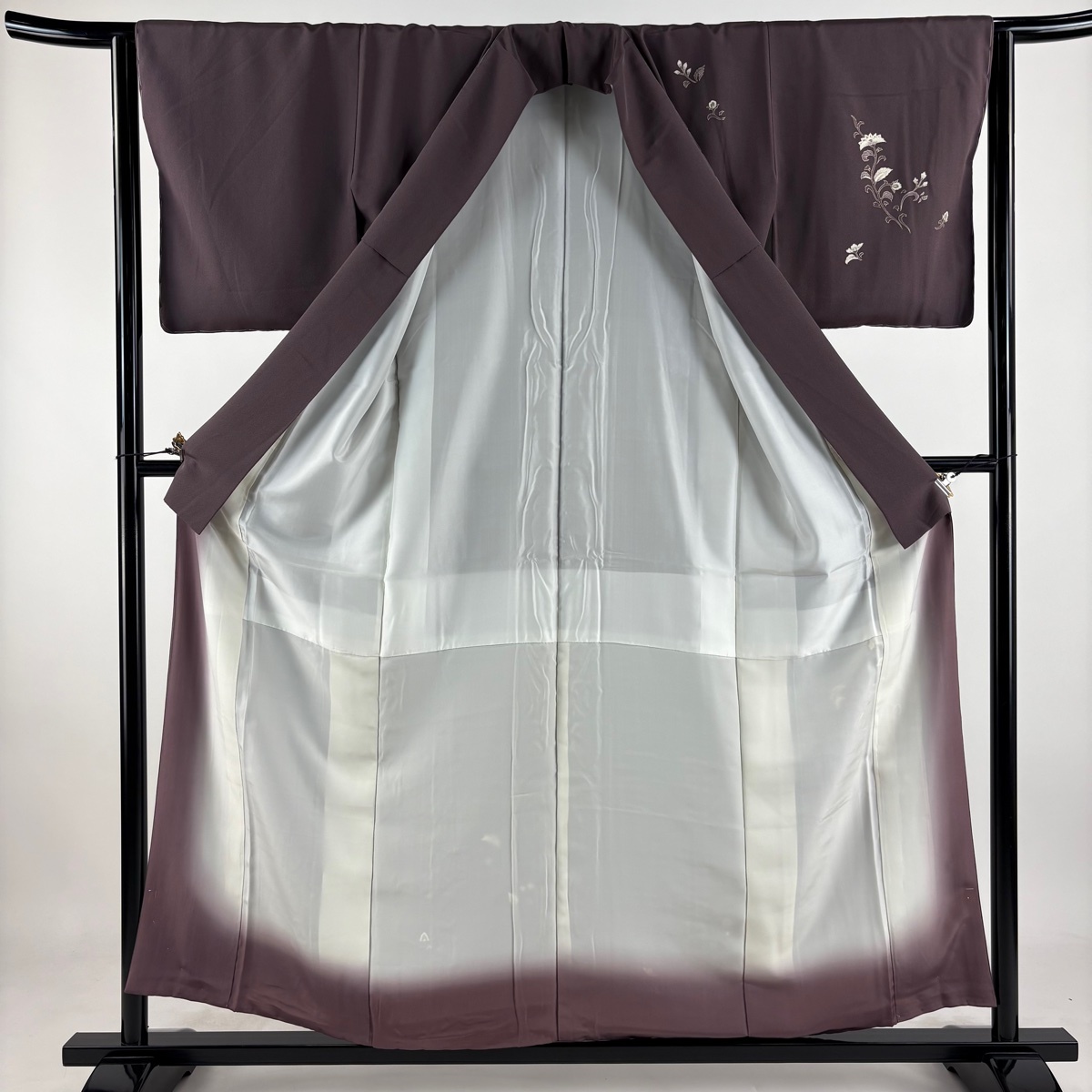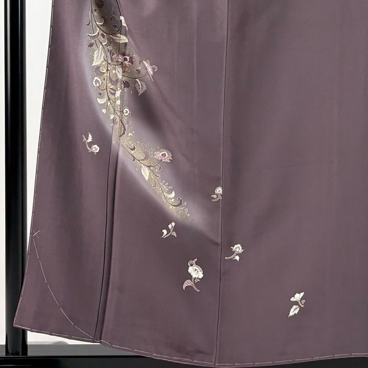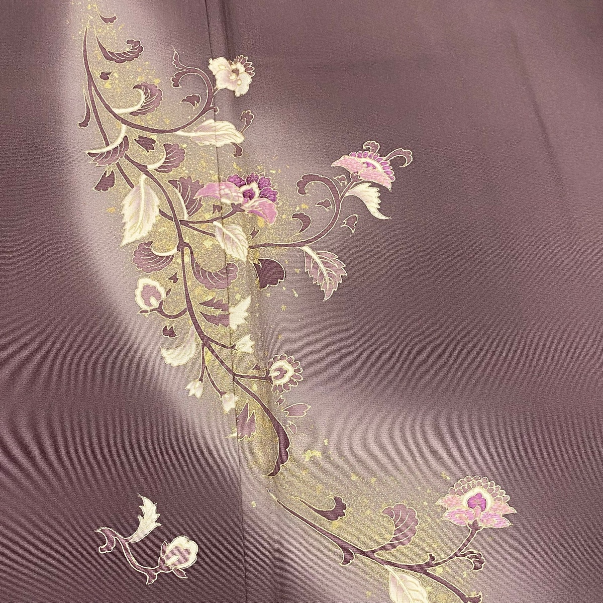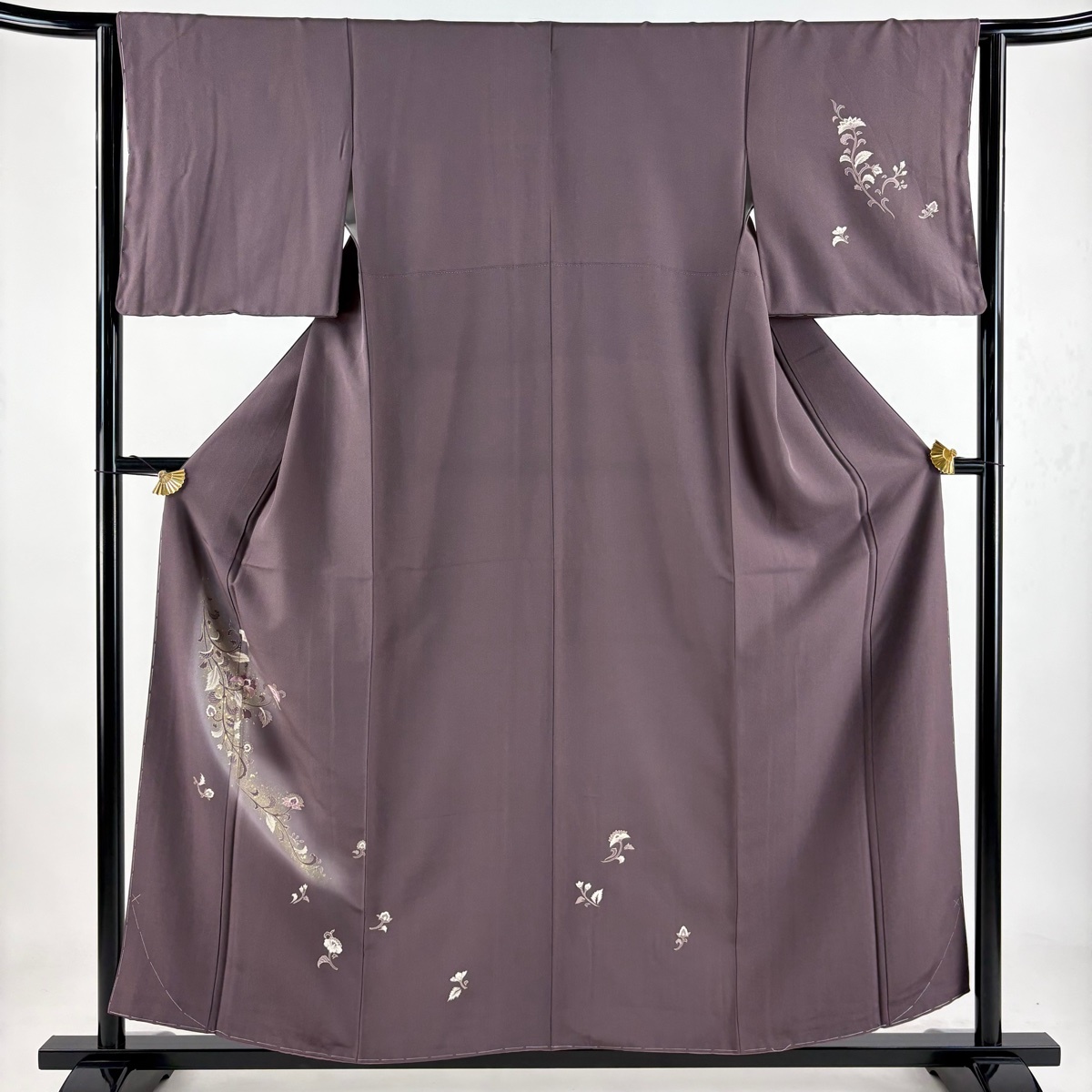 | 付下げ 秀品 草花 刺繍 金彩 紫 袷 身丈156 裄丈63.5 S 正絹 【中古】 |