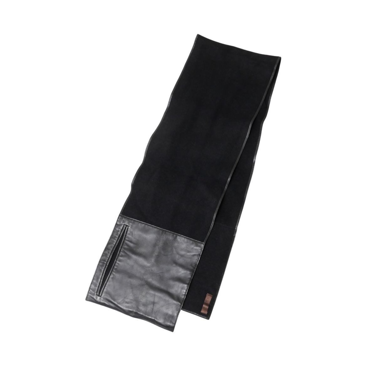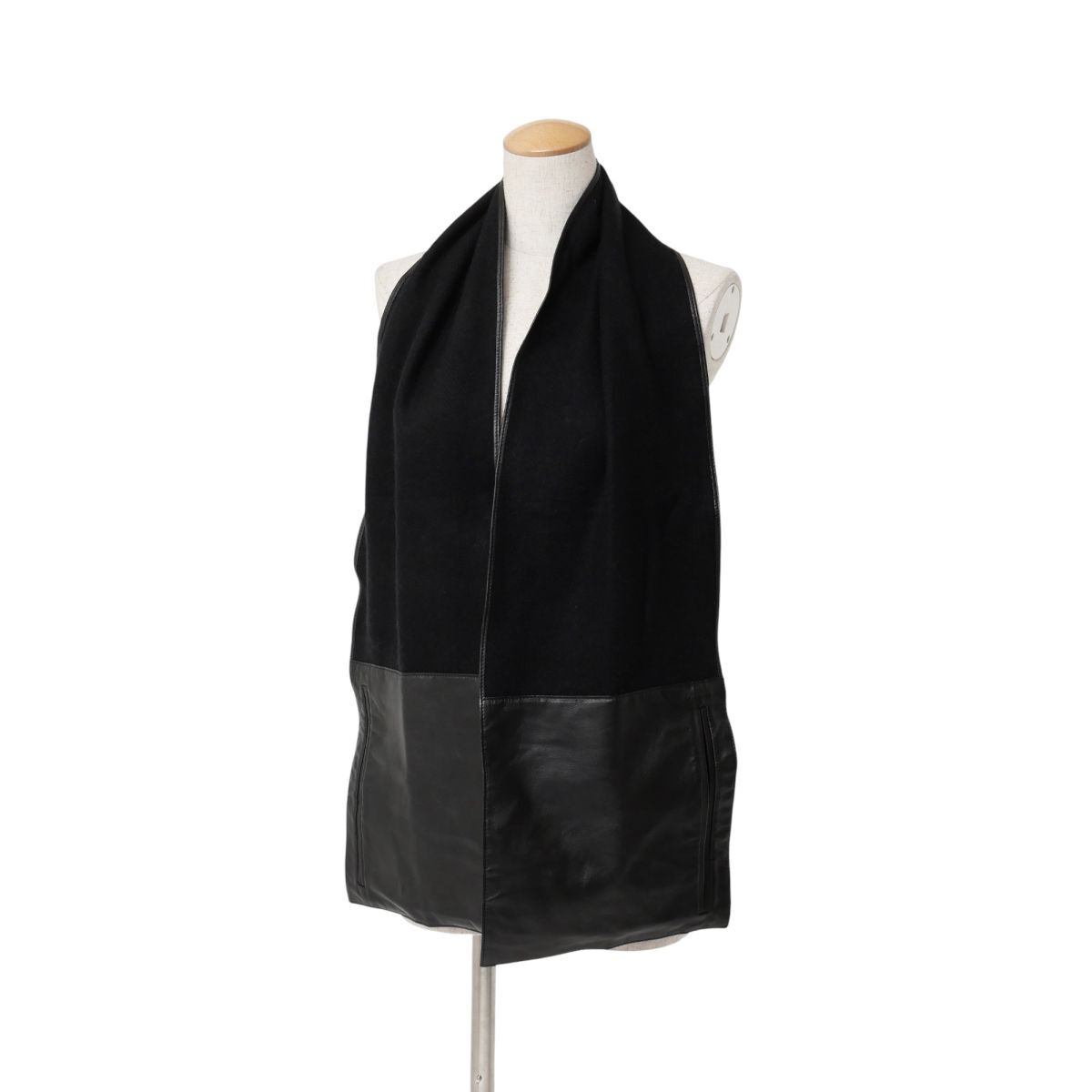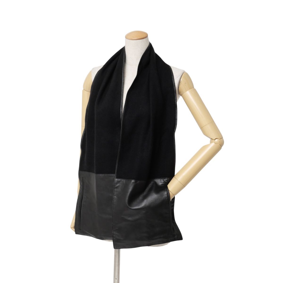 TE7278▲スペイン製 LOEWE ロエベ ナッパレザー×カシゴラ 本革 ポケット付き ストール マフラー ショール ブラック | |||
