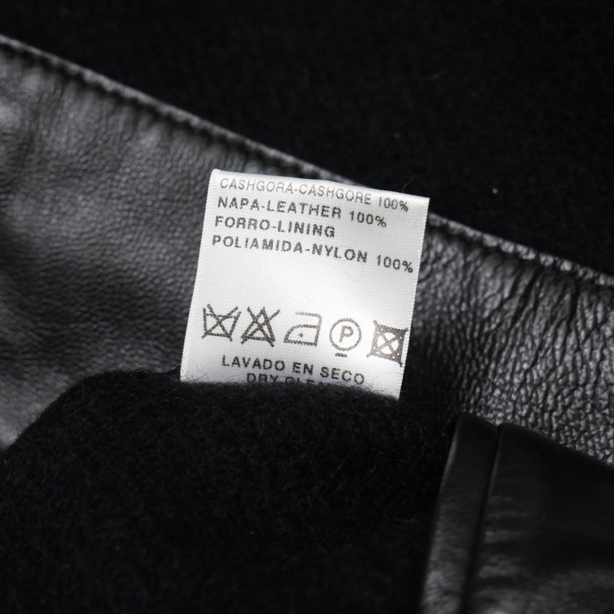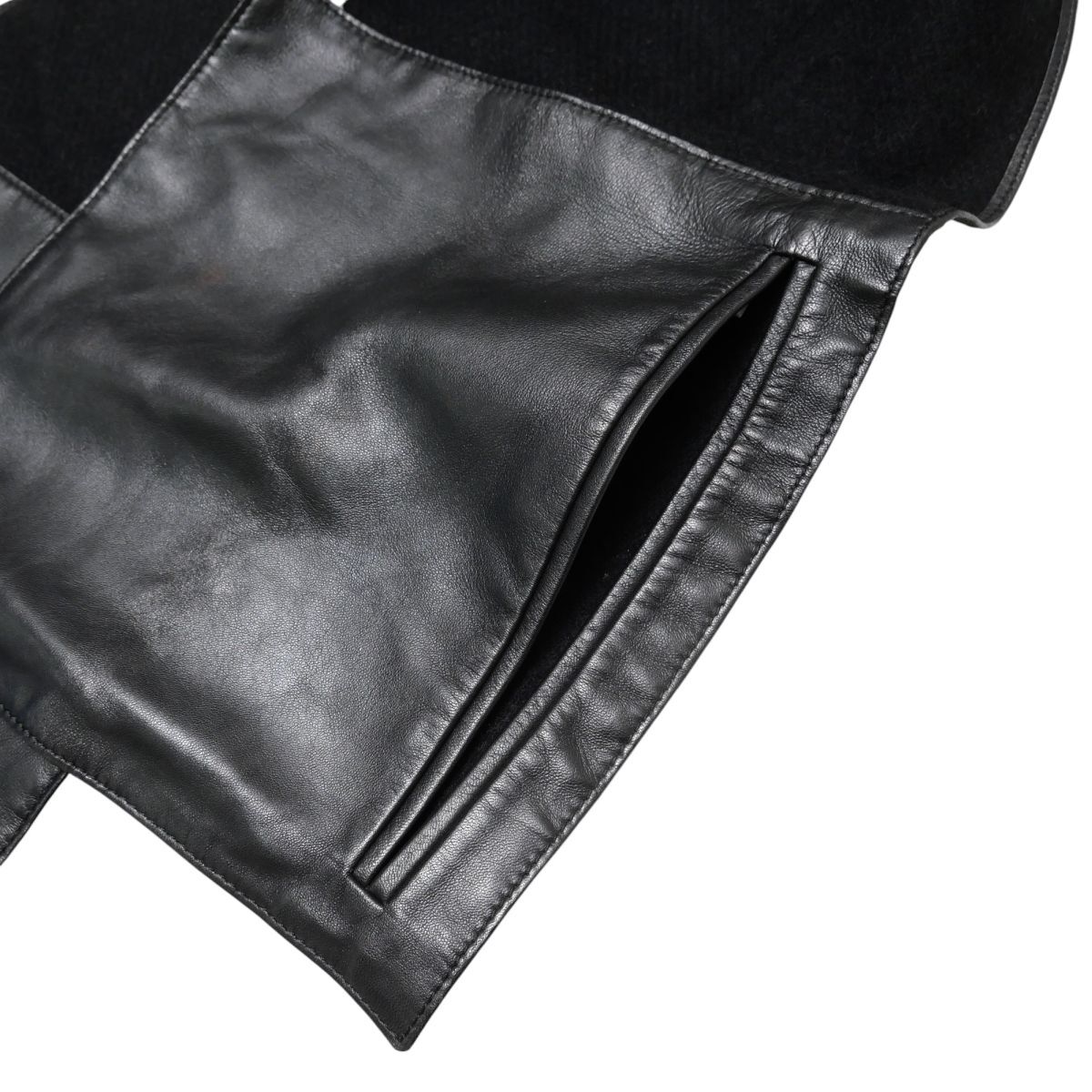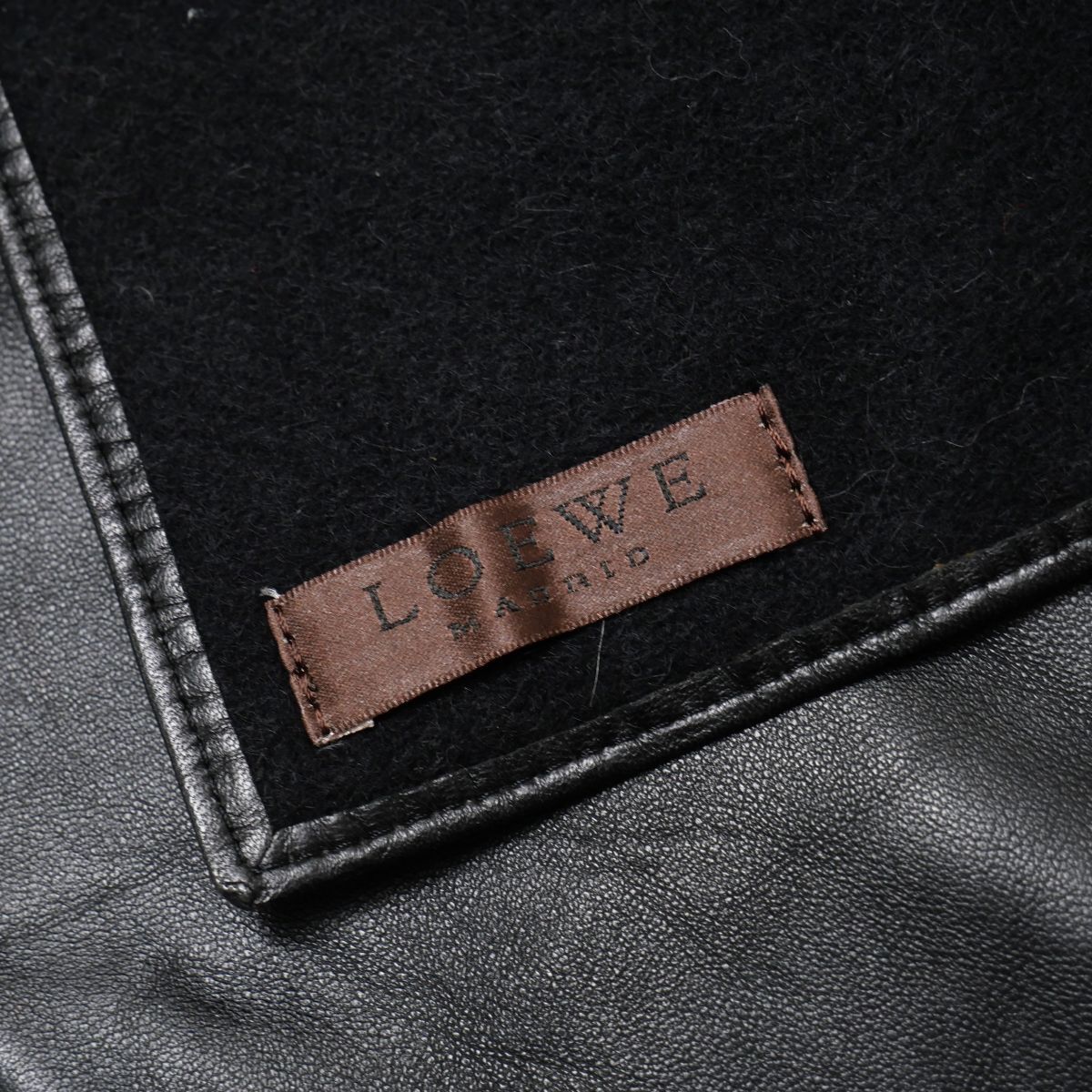 TE7278▲スペイン製 LOEWE ロエベ ナッパレザー×カシゴラ 本革 ポケット付き ストール マフラー ショール ブラック | |||