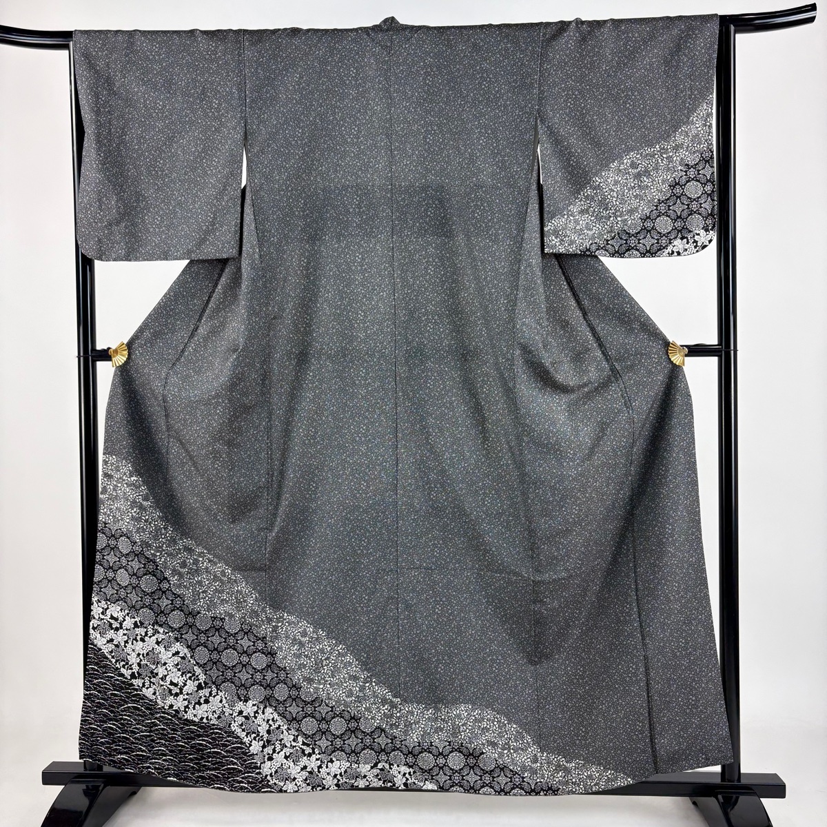 | 付下げ 美品 名品 葡萄 草花 黒灰 袷 身丈159 裄丈65 M 正絹 【中古】 |