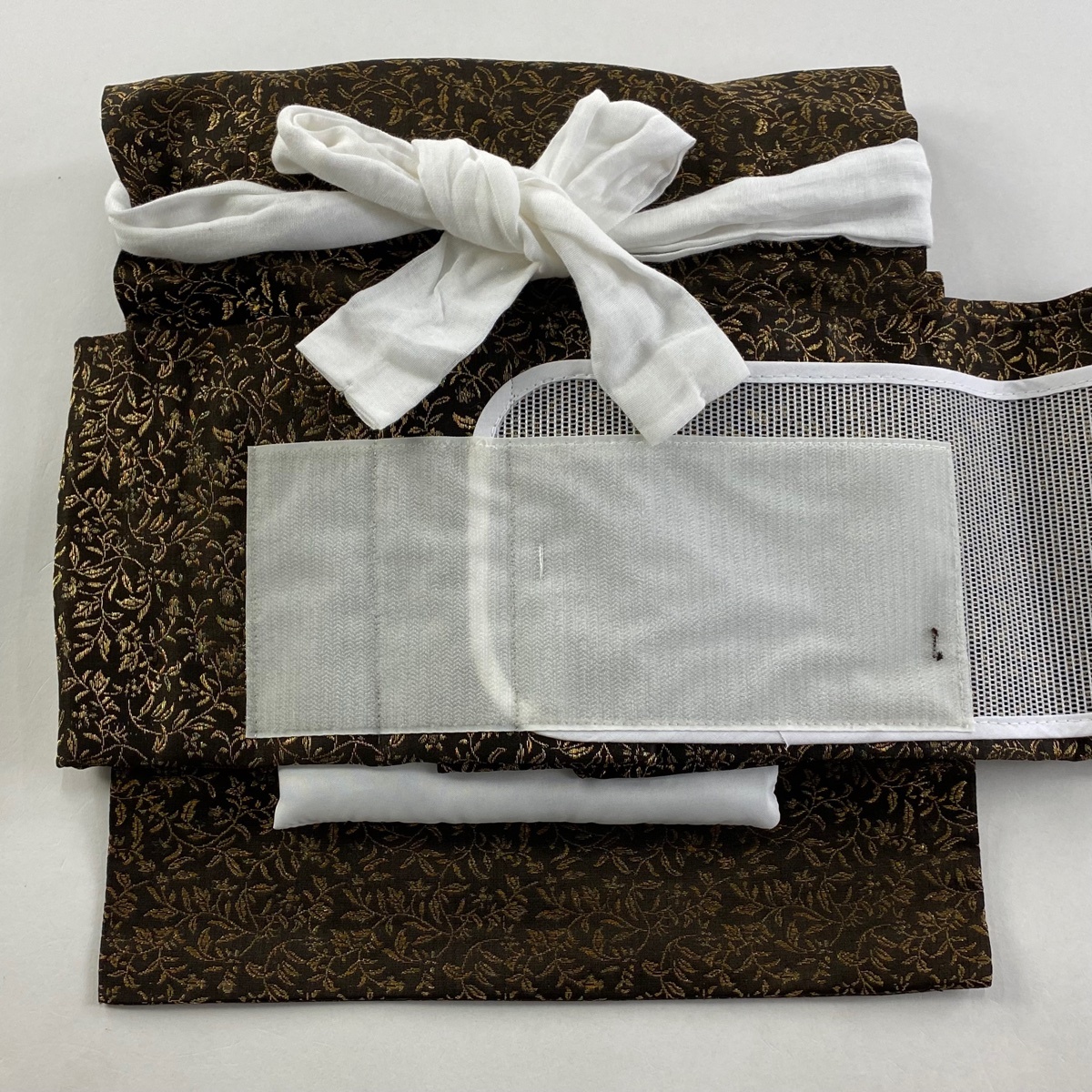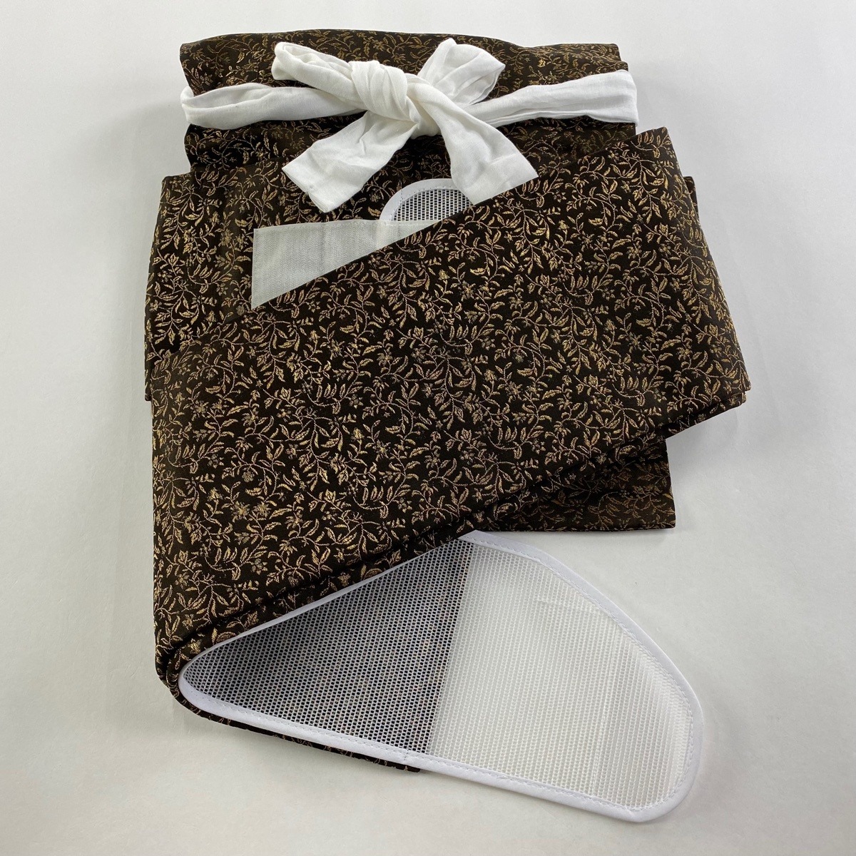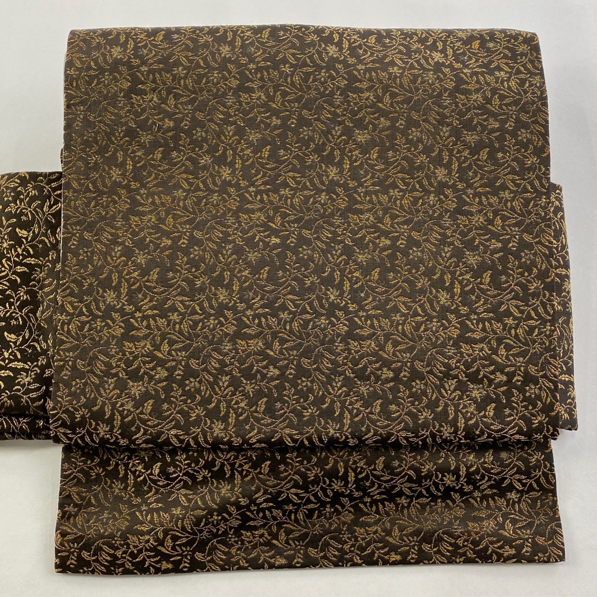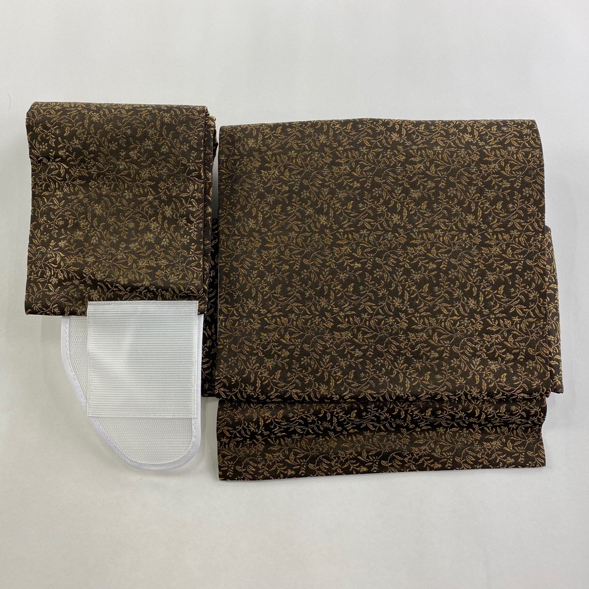 | 付け帯 美品 秀品 作り帯 花唐草 金糸 焦茶色 正絹 【中古】 |