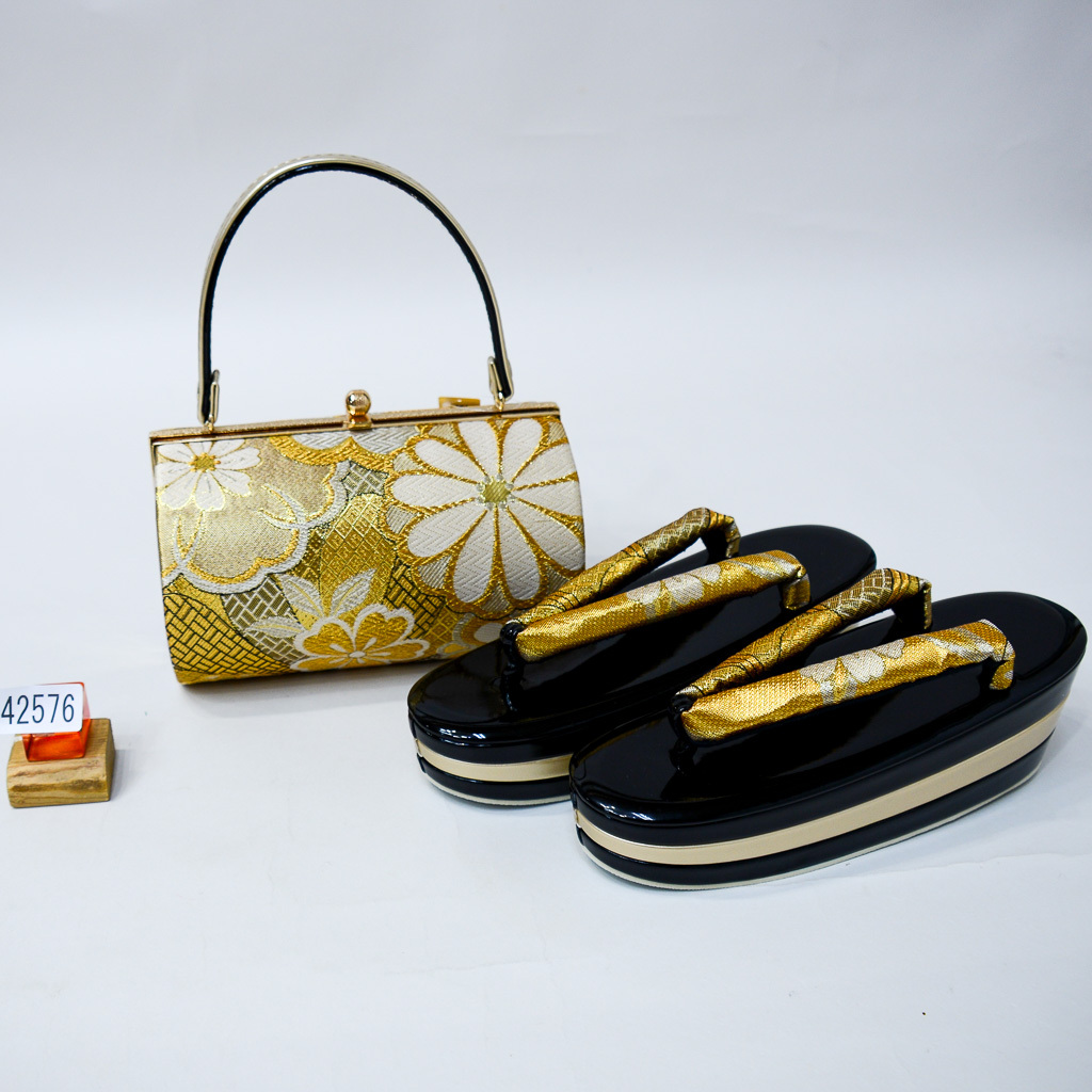 サイズ | バッグサイズ:横約19.5cm×奥行約13cm×高さ約11.5cm 草履サイズ:約24cm(フリーサイズ) 幅約8cm ヒール高さ:約7cm ※適合足サイズ22.5cm~24.5cm(フリーサイズ) ※草履の履き方は、草履サイズより0.5cm~1cmはみだして履くのが粋な履き方です!! |