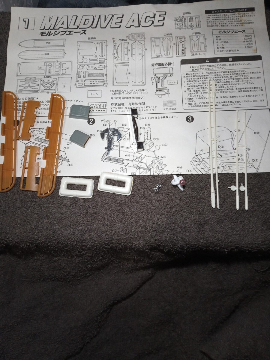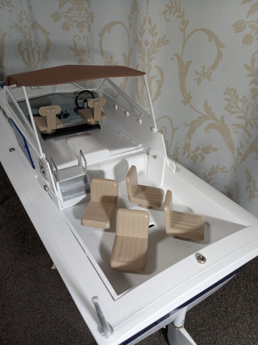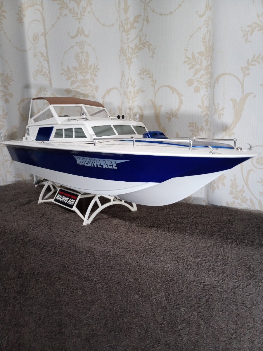 アリイの古いモーターライズプラモデルをラジコン化してメカを外した物です。サーボとモーターのみ付属します。船長は約45センチとプラモデルとしては大きいです。メンテナンス出来るようにネジ6本で3分割できるようにしてます。外装はオリジナルではなく多少改造してます。浴槽で走らせたらバランスも良く安定してました。船底やスクリューの辺りは傷や塗装ハゲもあります。船外機もありますが取り付けステーがないのでそのままでは取り付け出来ません。ノークレームノーリターン。プラモデルなので輸送中の破損に関しては落札者様で修理して下さい。箱を作って80サイズでギリギリ収まると思いますがオーバーした場合は100サイズになります。
