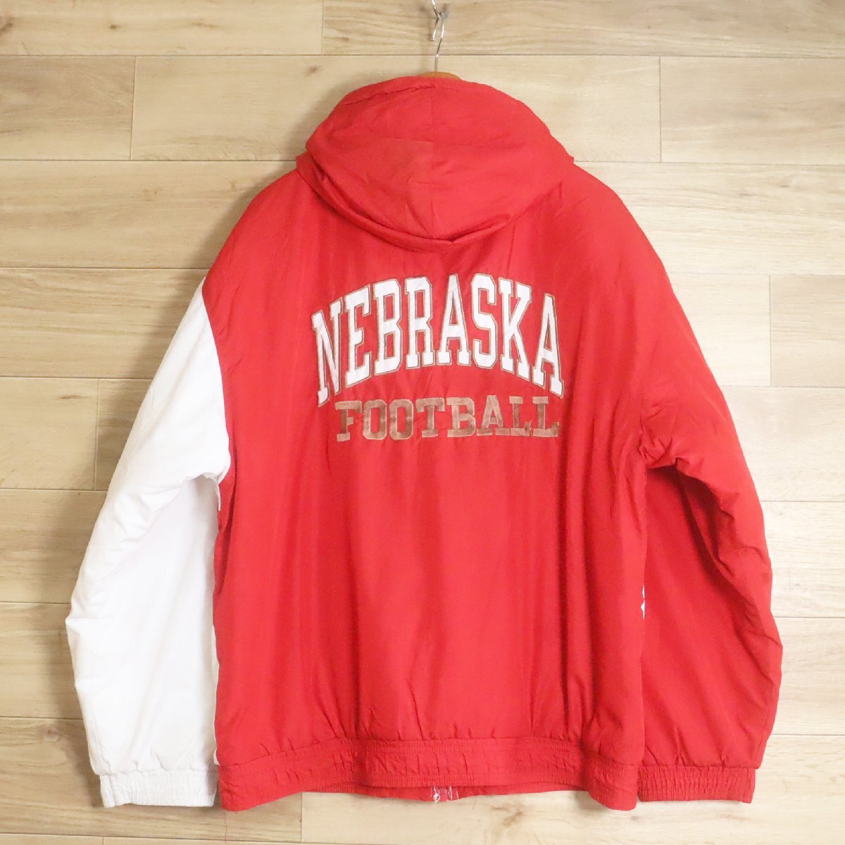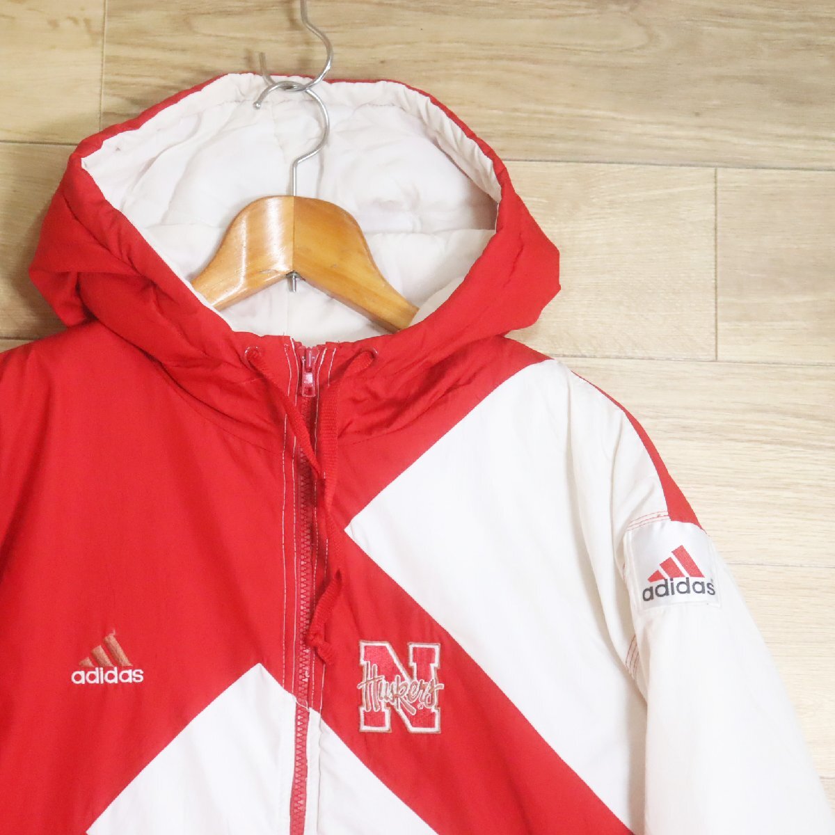 Y2R/R7.21-3 90s adidas アディダス ナイロンパーカー 中綿ジャケット NEBRASKA FOOTBALL 刺繍 ジャンパー M メンズ