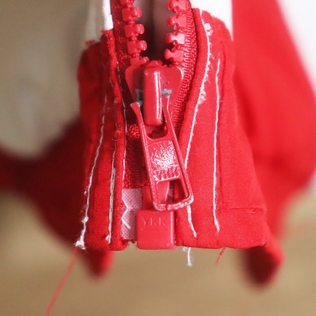 中古品です。使用感があります。各部に薄汚れ、右ポケット付近や袖に糸つれがあります。