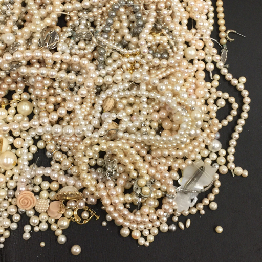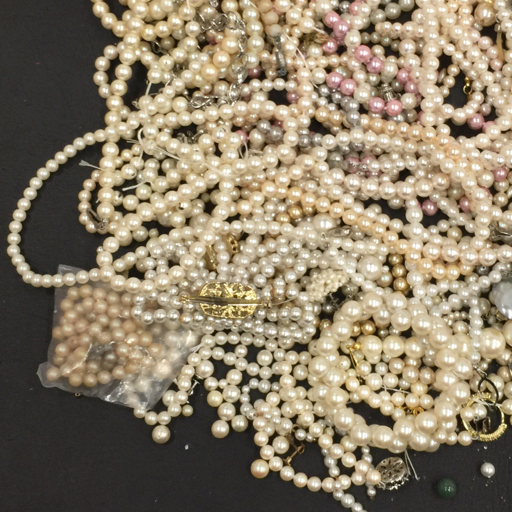 1円 フェイクパール ネックレス イヤリング ブローチ カフス 等 イミテーション アクセサリー まとめ 総重量約3.5kg |