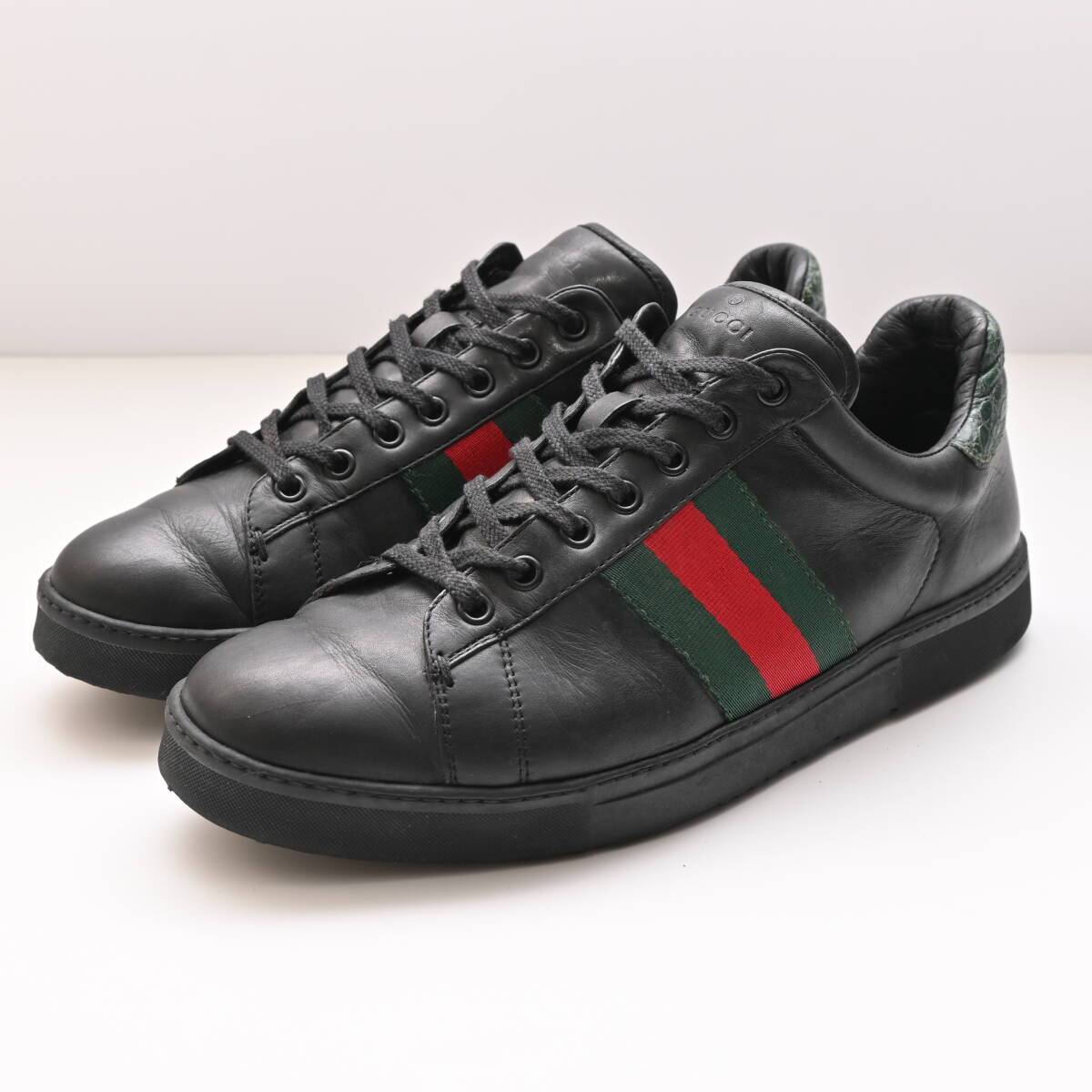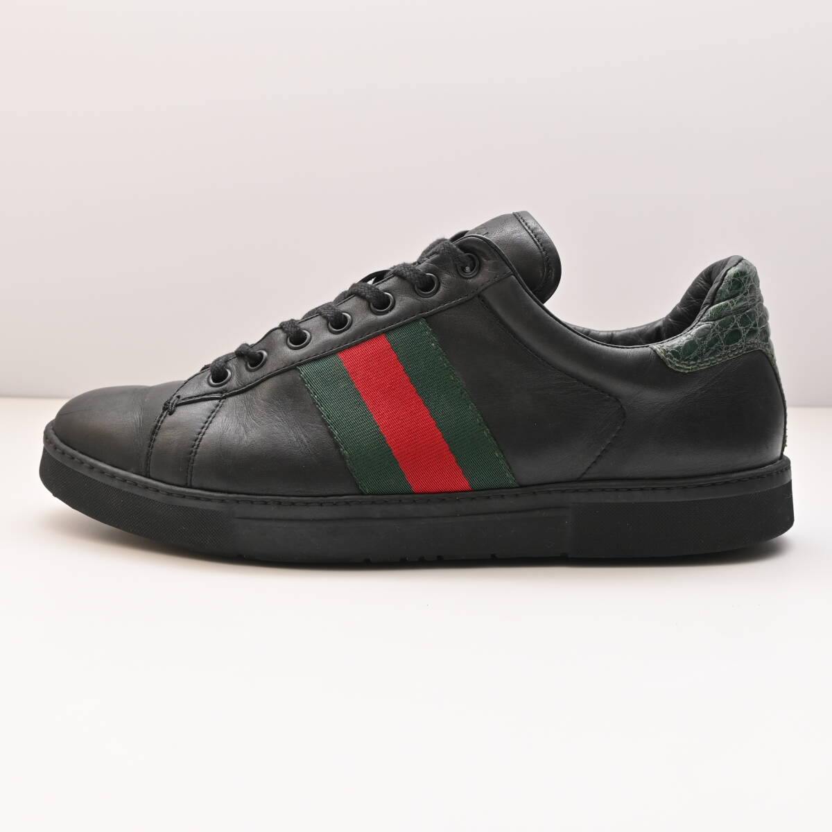 【正規品 41.5(約27.5cm)】 GUCCI グッチ シェリーライン クロコヒール レザースニーカー ブラック 黒 NA6395