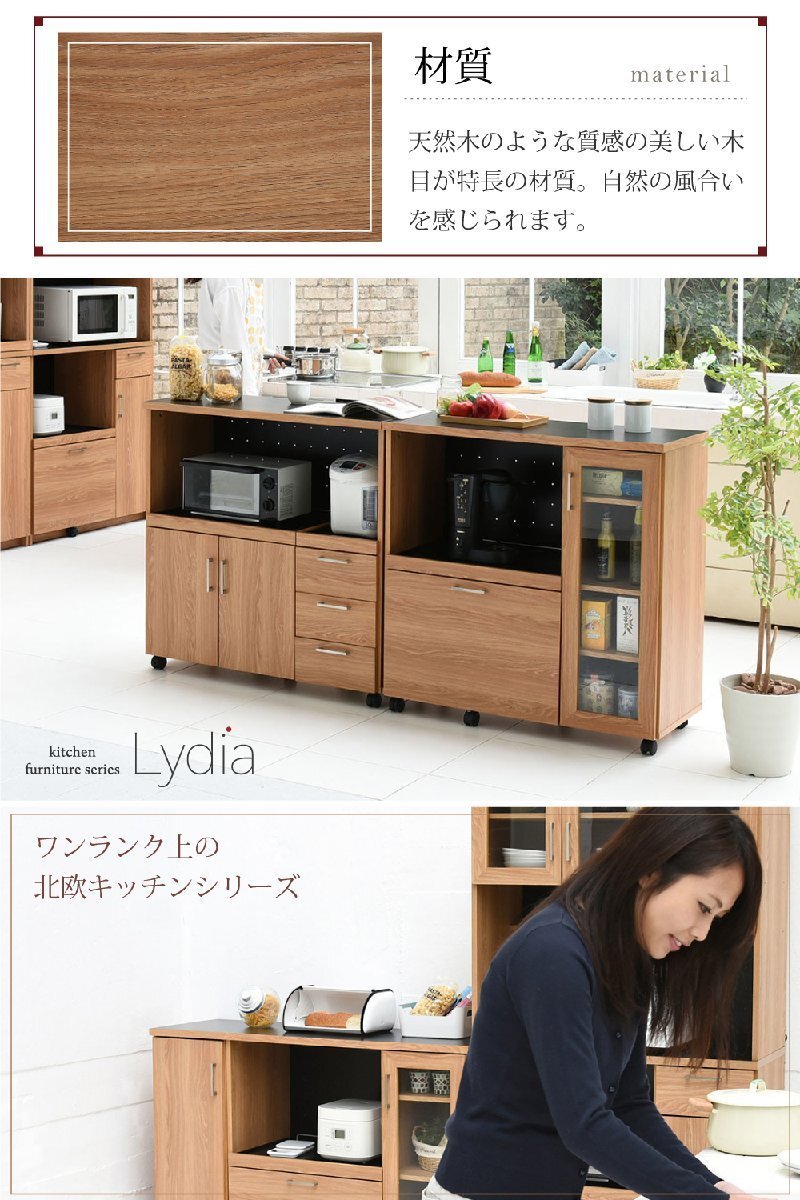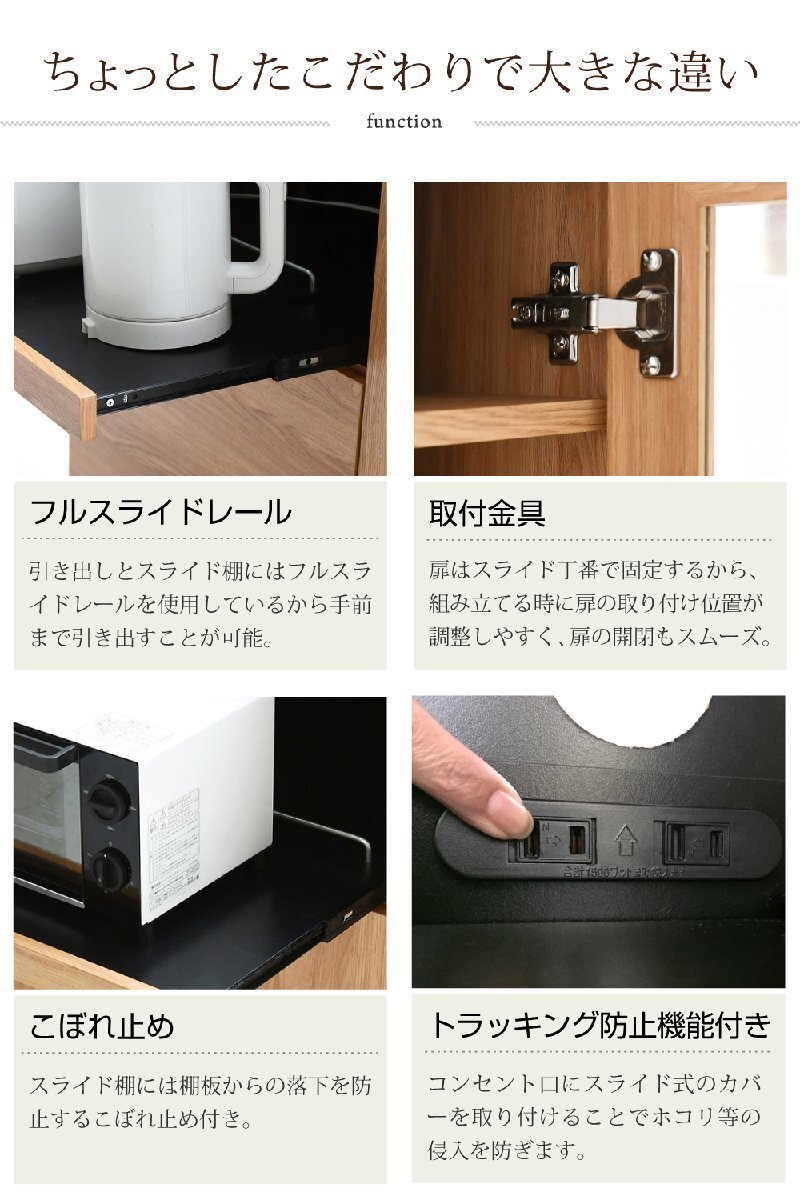 ■商品説明 使い方自由な新型カウンター。つないでも離しても使えるキッチンカウンター。離して使えば隙間収納にも使えるキャビネット。 |