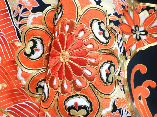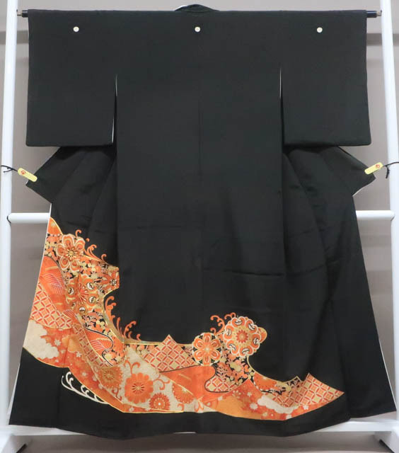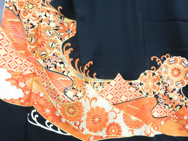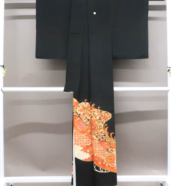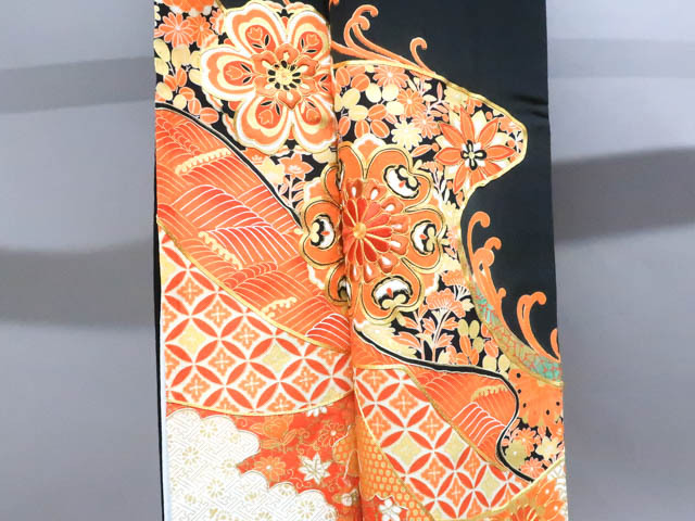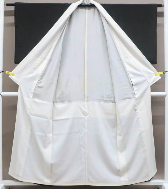 リサイクル商品のため、全体薄ヤケと、左前袖、衿先、両袖口に薄汚れがございますが着用可能なお品です。 地色は 黒です。 1枚目の画像が近いお色かと思われます。 素材は正絹です。 |