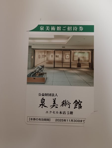 ・株式会社イズミの株主優待 泉美術館の招待券1枚です