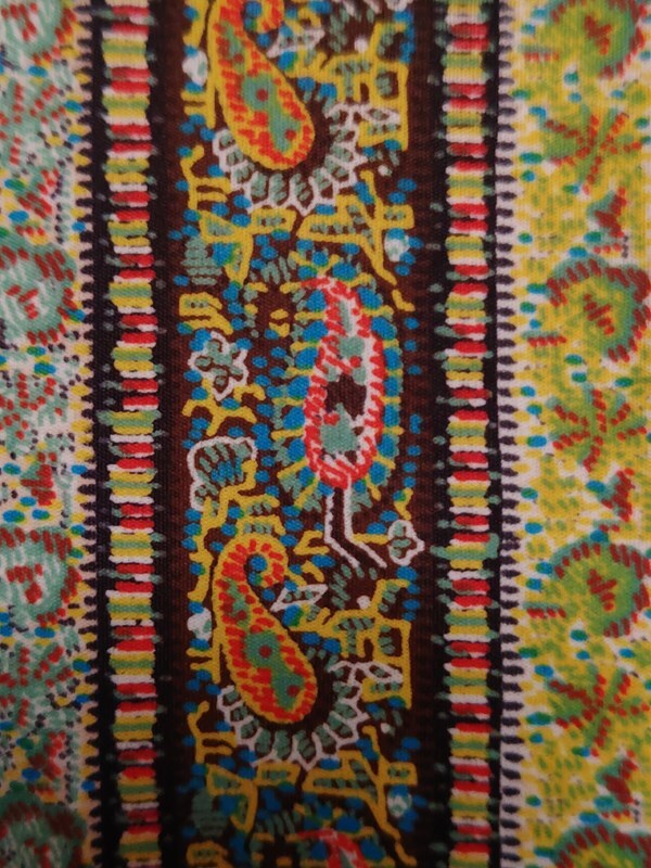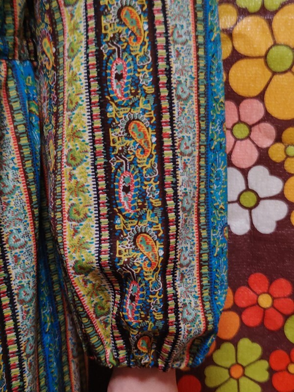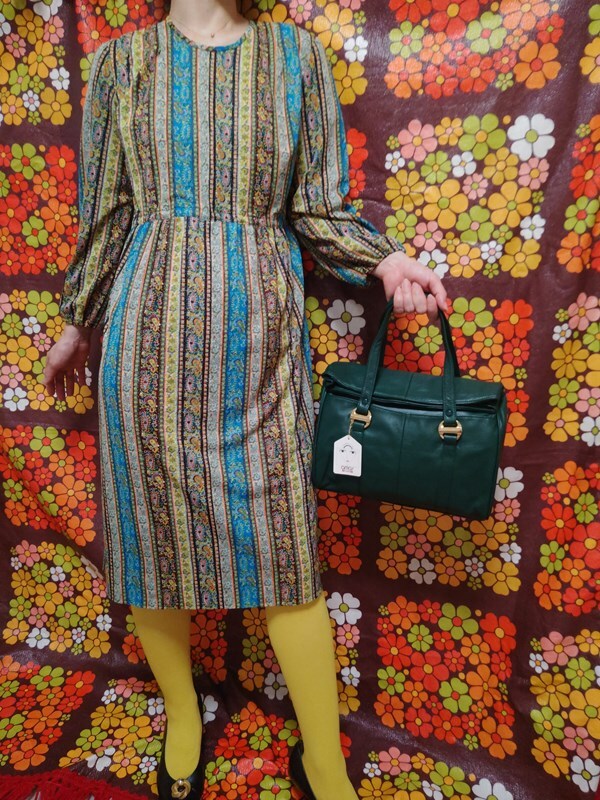 ヴィンテージ昭和レトロ古着*お仕立て品*ペイズリー・ストライプ柄ワンピ60’s70’sモダン国産