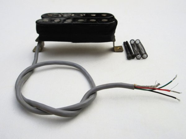 改造されたわけではなく前後ともに同じで、配線の色もこの時期のFERNANDESハムバッカーでは赤、茶、黒、橙の4芯ですが、こちらは緑、黒、赤、白という1986年までの仕様になっています。