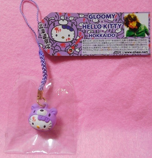 ☆レア☆2009☆北海道限定 グルーミーコラボ ラベンダーベアーバージョン ハローキティ 顔鈴根付け☆ストラップ☆