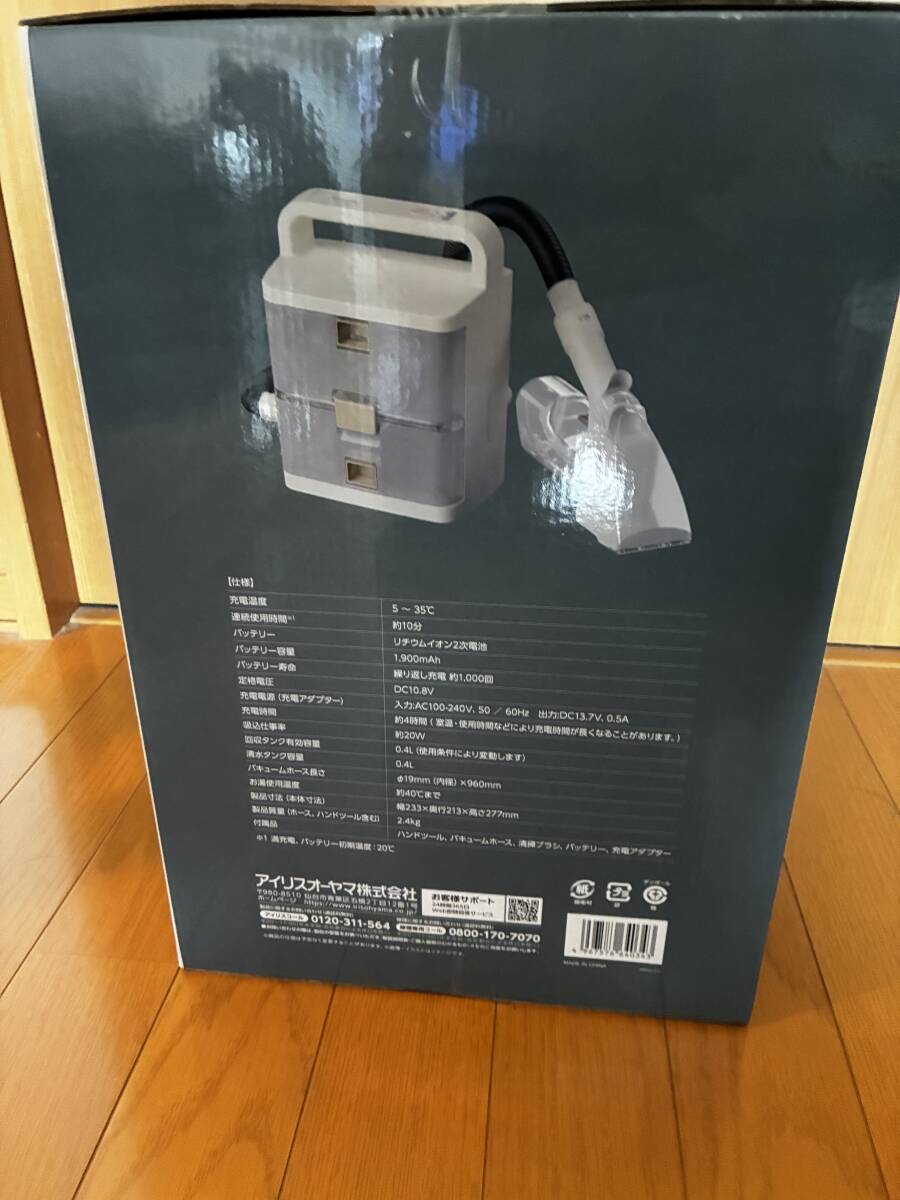 ●製品仕様/充電温度:5~35℃、連続使用時間:約10分(満充電、バッテリー初期温度:20℃)、吸込仕事率:約20W、回収タンク有効容量:0.4L(使用条件により変動します)、清水タンク容量:0.4L、バキュームホース長さ:φ19mm(内径)×96mm、お湯使用温度:約40℃まで、付属品:ハンドツール・バキュームホース・清掃ブラシ・バッテリー・充電アダプター、バッテリー:リチウムイオン2次電池、バッテリー容量:1,900mAh、バッテリー寿命:繰り返し充電約1,000回、定格電圧:DC10.8V、充電電源(充電アダプター):入力:AC100-240V・50/60Hz/出力:DC13.7V・0.5A、充電時間:約4時間(室温・使用時間などにより充電時間がながくなることがあります。)