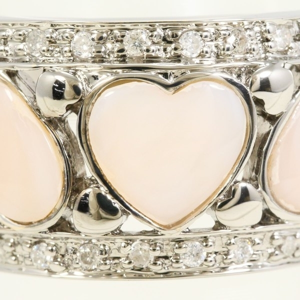 【素材】 K18/ホワイトゴールド 【石目】 天然シェル 天然ダイアモンド 0.13ct 【総重量】 約5.4g 【サイズ】 約12号 【最大幅】 約11mm 【サイズ直し】 不可 【付属品】 カード式鑑別書(ジェムグレーディングシステムジャパン) 【商品の状態】 新品仕上げ済み 【コメント】 リングのデザインにあしらわれたハートシェイプのシェルが整然と並び、清らかな印象を与えています。白い光沢が柔らかく輝き、ホワイトゴールドの地金と調和して上品な雰囲気を生み出しています。周囲を飾る小さなダイヤモンドが繊細な煌めきを添え、全体を華やかに仕上げています。 | |