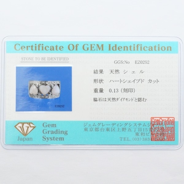 K18WG リング 指輪 12号 シェル ダイヤ 0.13 カード鑑別書 総重量約5.4g 中古 美品 送料無料 | |