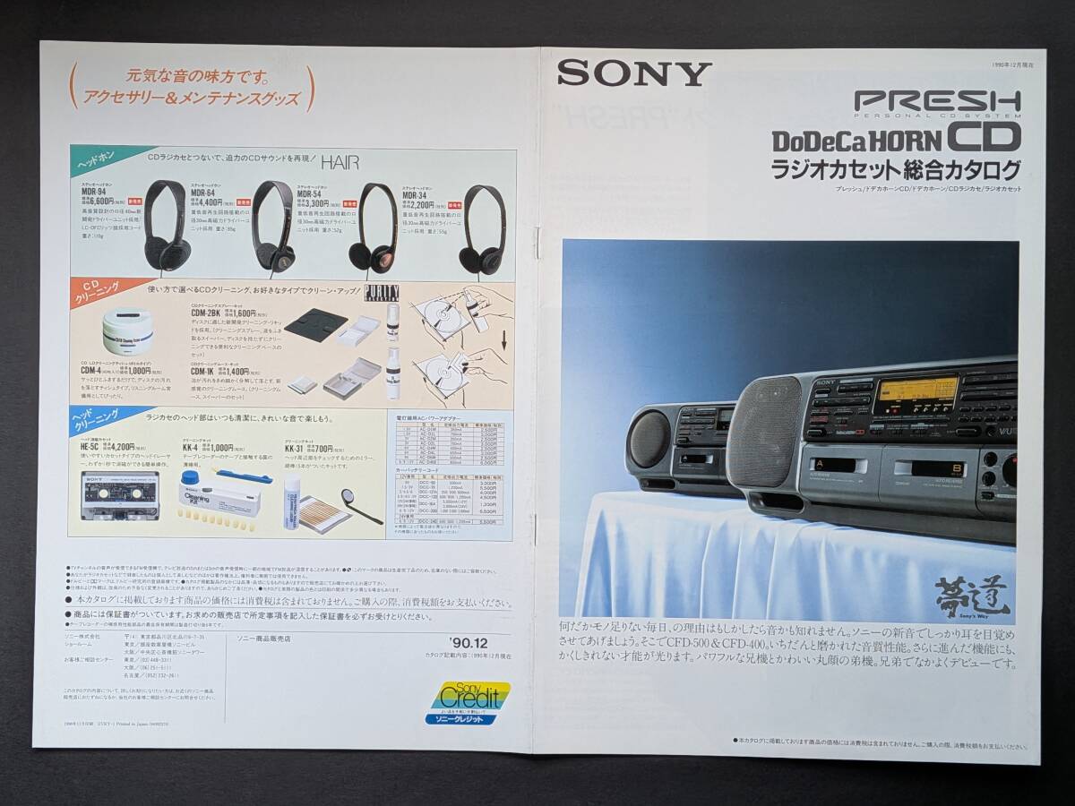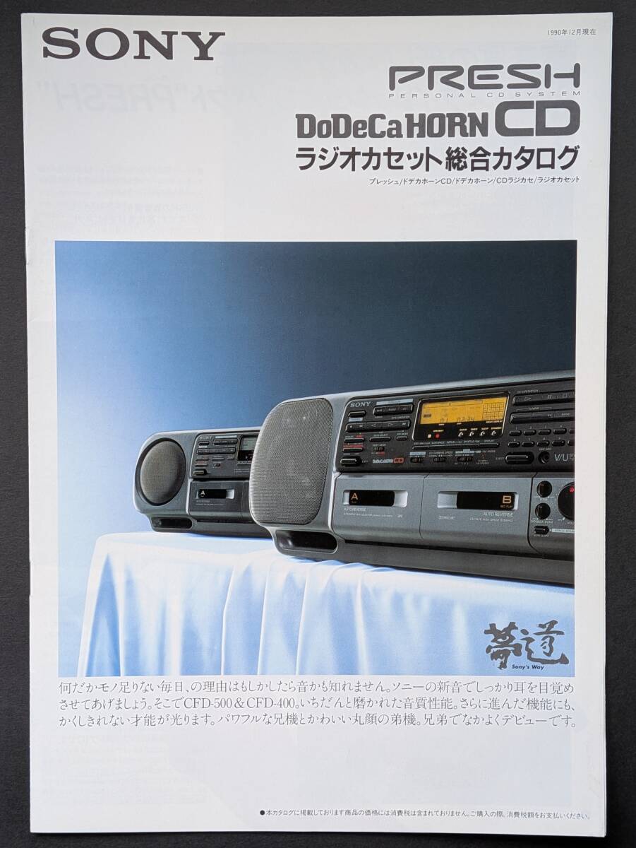 1990年12月発行のソニーPRESH/DoDeCaHORN CD/ラジオカセット総合カタログです。