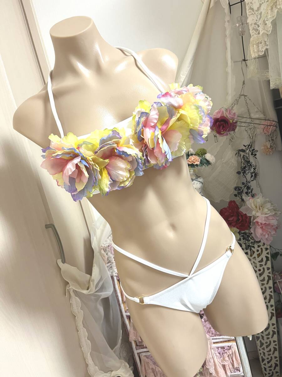 レディース水着9Mサイズ:ミューラーン【Defilious】ワイヤーバンドゥビキニ/立体花飾り/グラムレイヤー水着パンツ:MIX 定価14,000+税