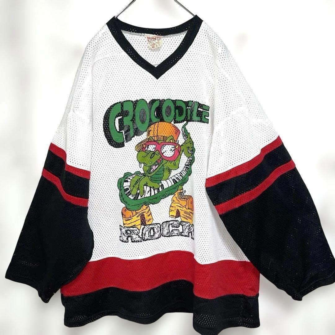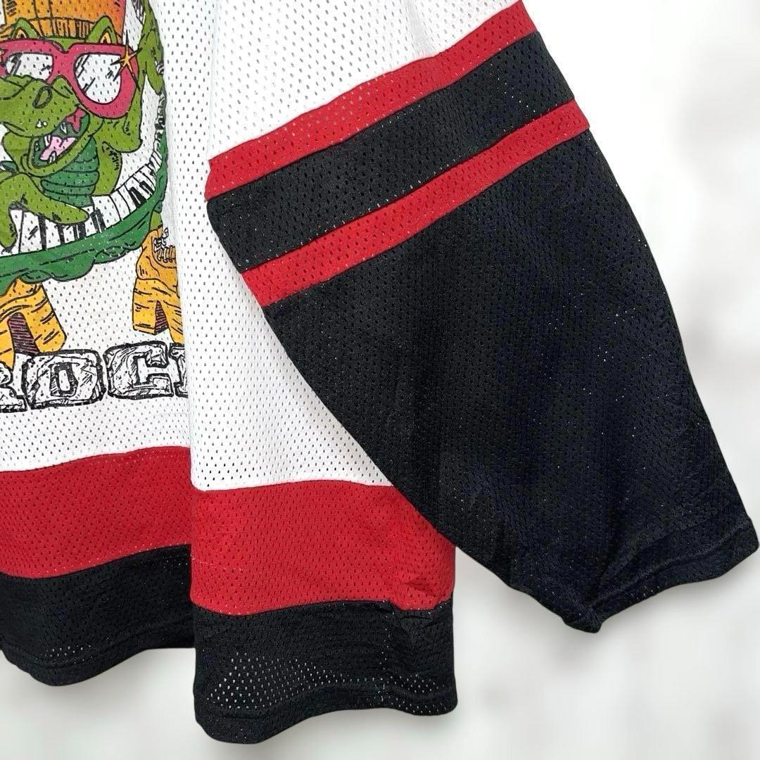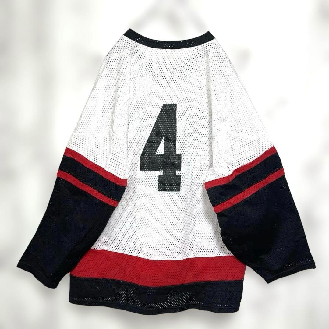 アイスホッケーユニフォーム メッシュ メンズXLサイズ ホワイト 白 デカキャラプリント 古着