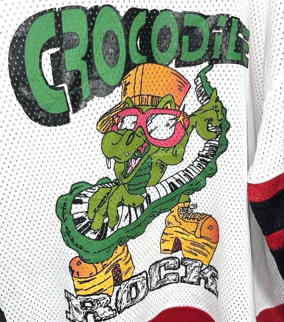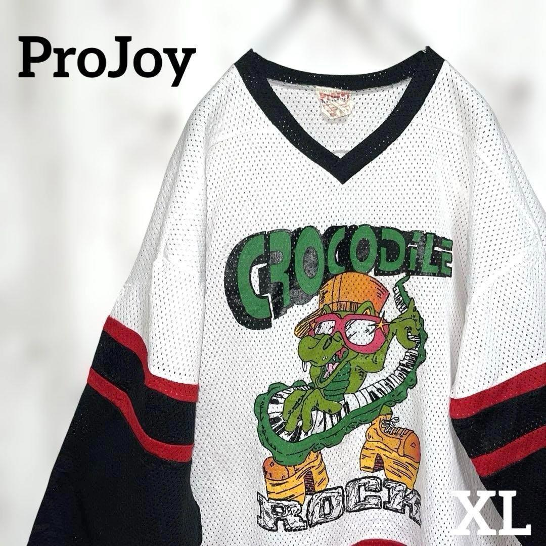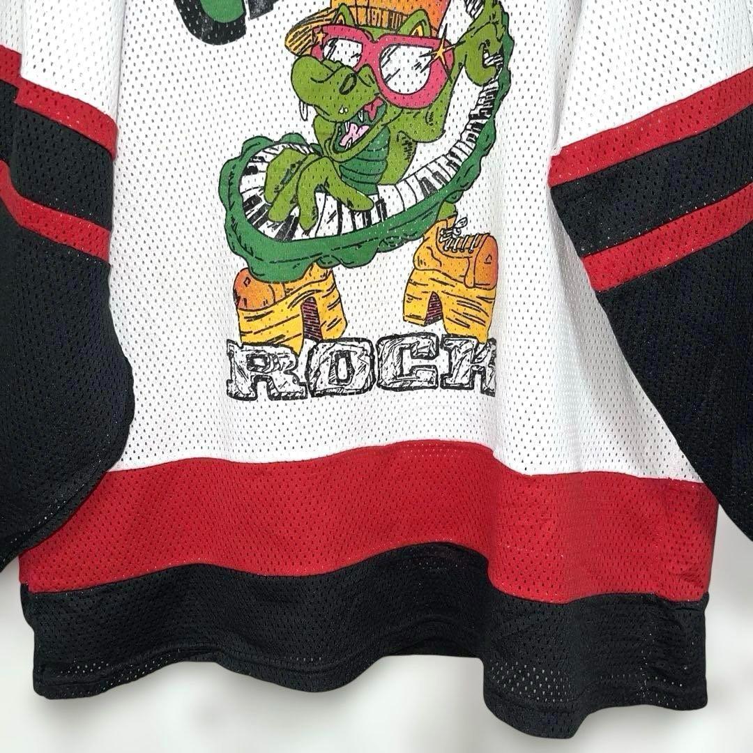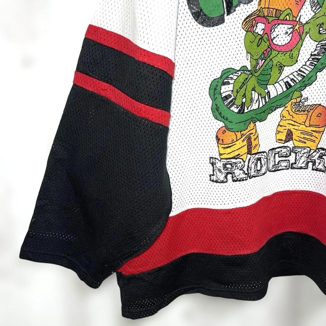 アイスホッケーユニフォーム メッシュ メンズXLサイズ ホワイト 白 デカキャラプリント 古着