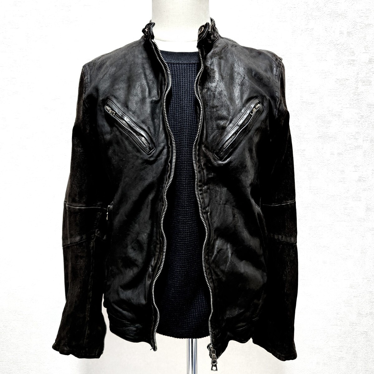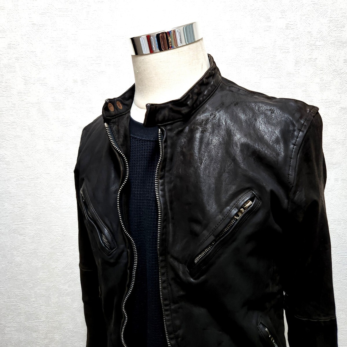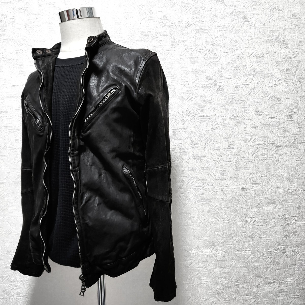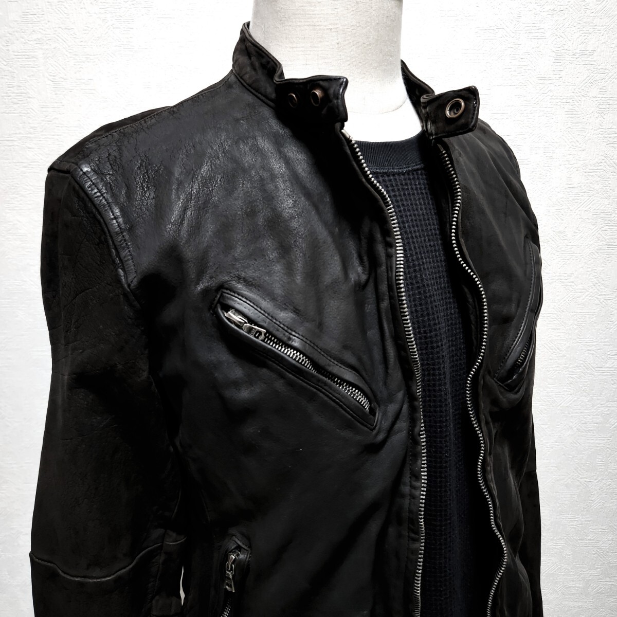 バックラッシュのレザージャケット特有の細かいシワ、スレがありますが、大きな破損はありません。