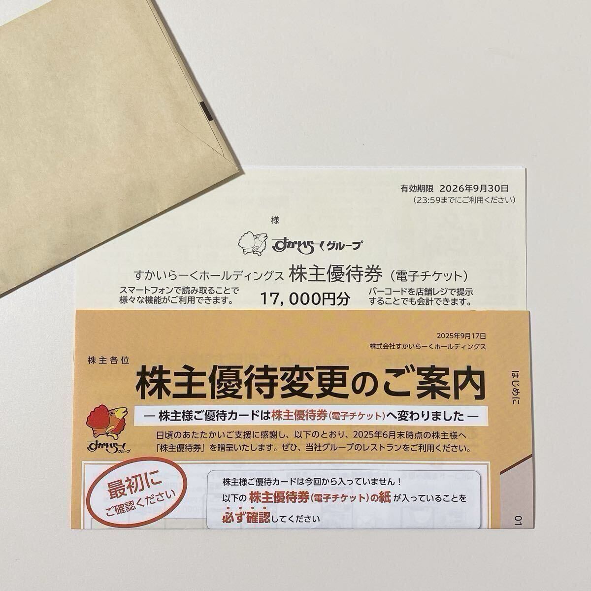 すかいらーくグループの株主優待17000円分です