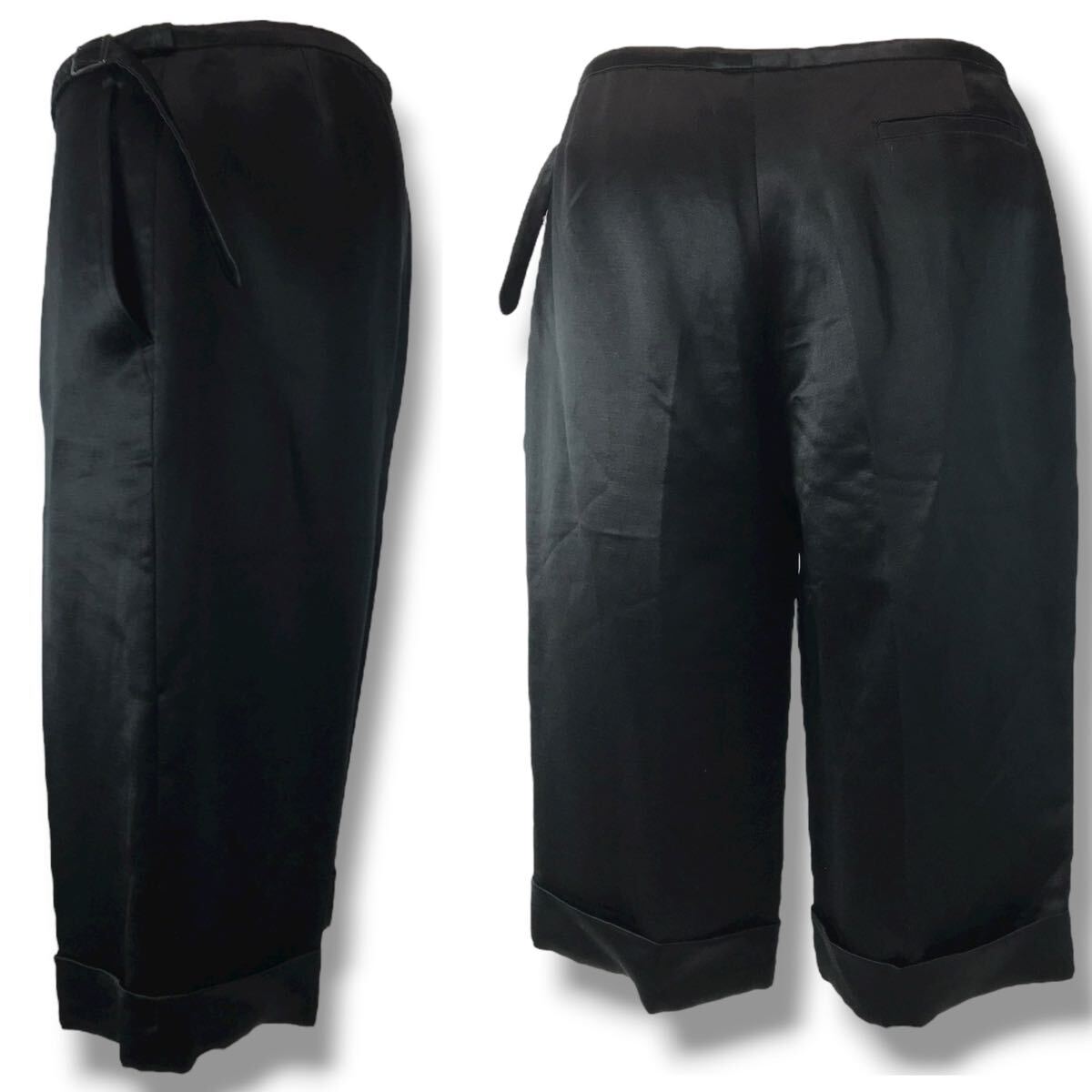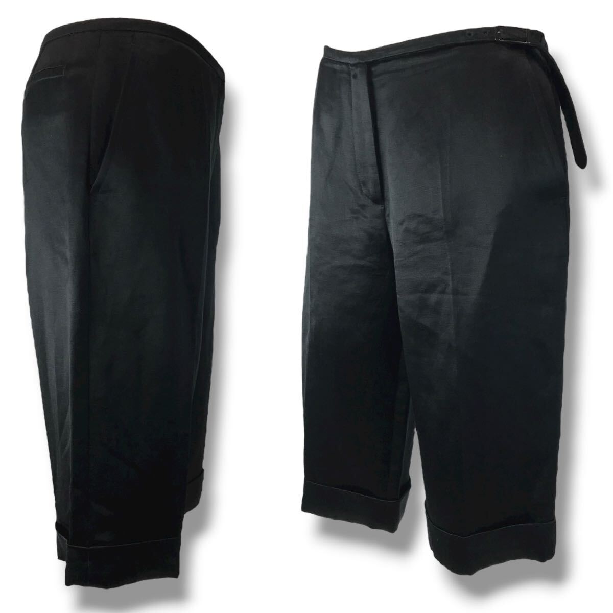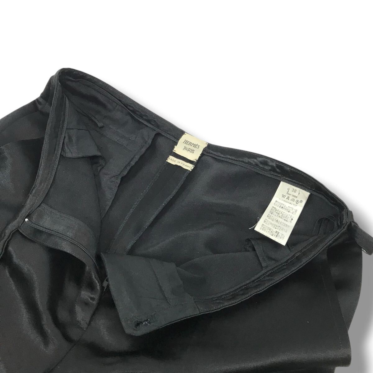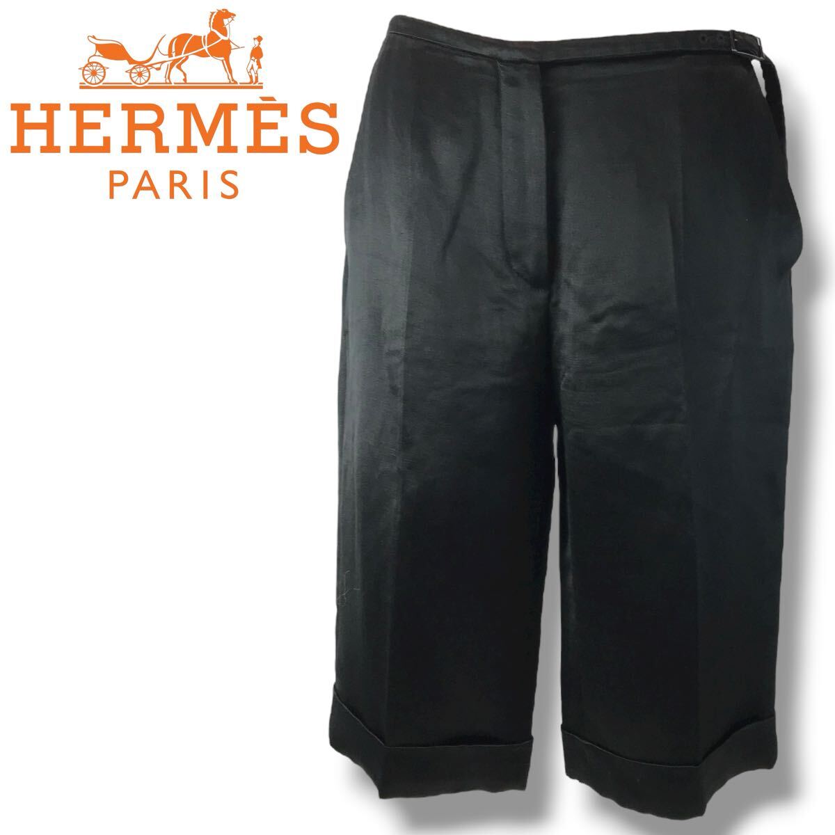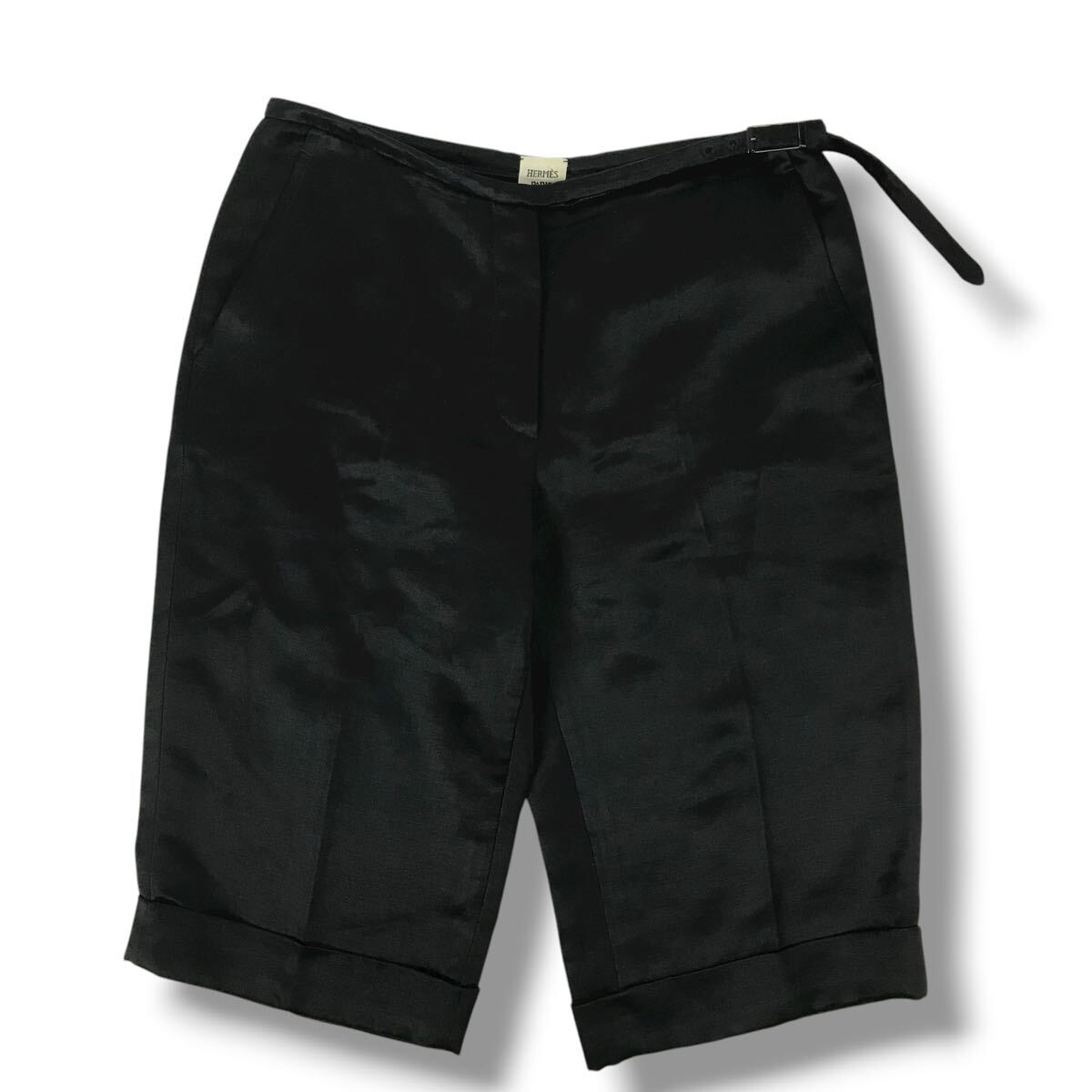 c180 良品 HERMES エルメス リネン×シルク サテンパンツ ショートパンツ ハーフパンツ ブラック 38 フランス製 正規品 レディース Vintage