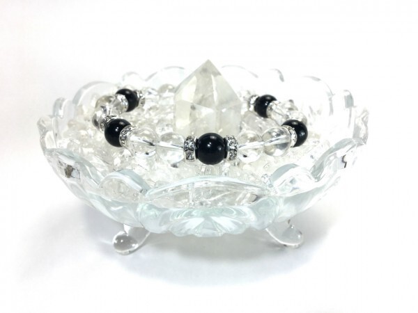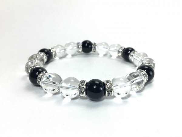 水晶×オニキス パワーストーン ブレスレット 天然石ブレス (ロンデル: シルバー) 10mm メンズ・レディース