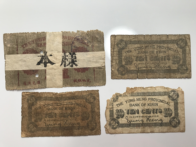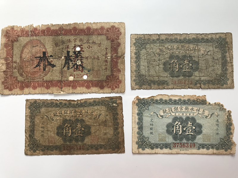 吉林永衝官銀銭号 4枚 中国紙幣 見本札有り 中華民国 旧紙幣 古札 古紙幣 紙幣 貨幣 希少