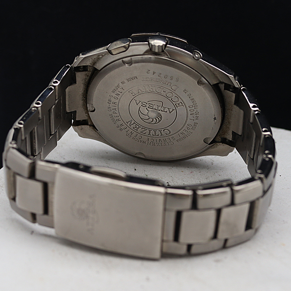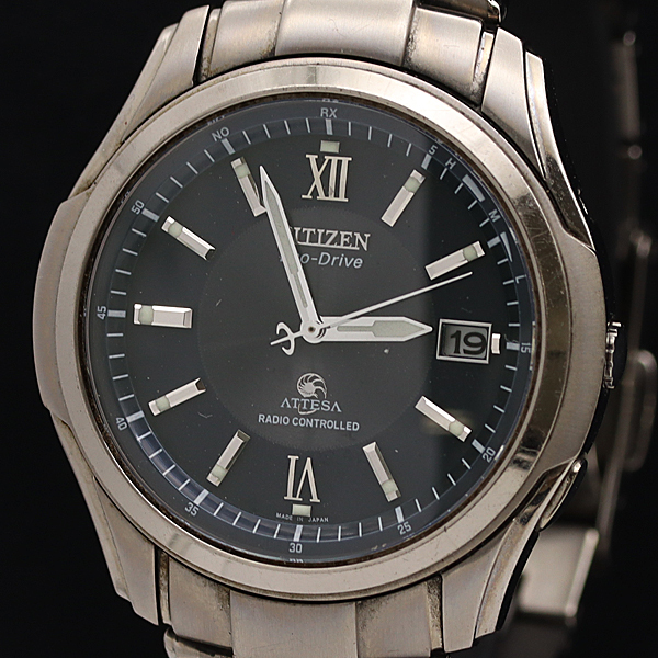 1円 稼働 シチズン アテッサ エコドライブ H410-T005870 電波ソーラー ネイビー文字盤 メンズ腕時計 3404000 9PRT SMZ