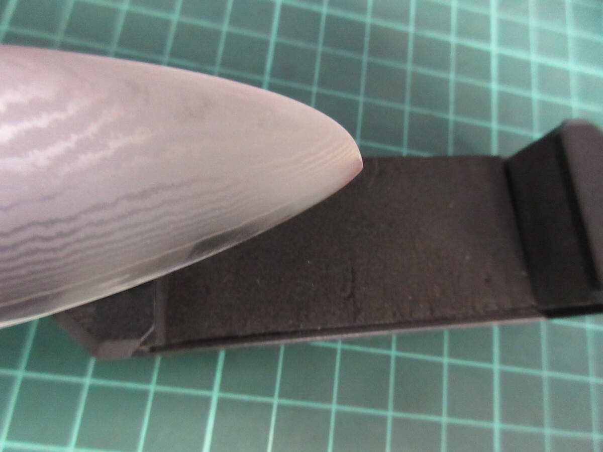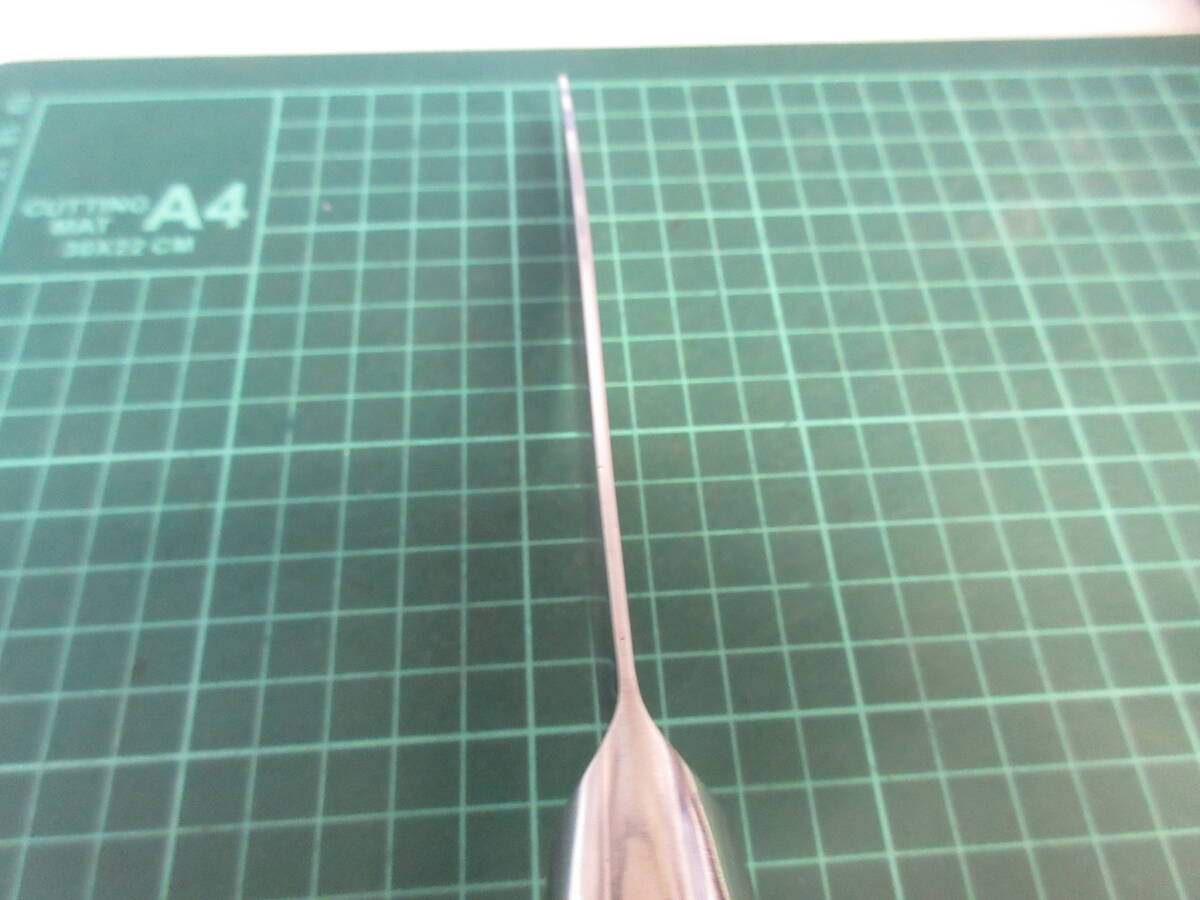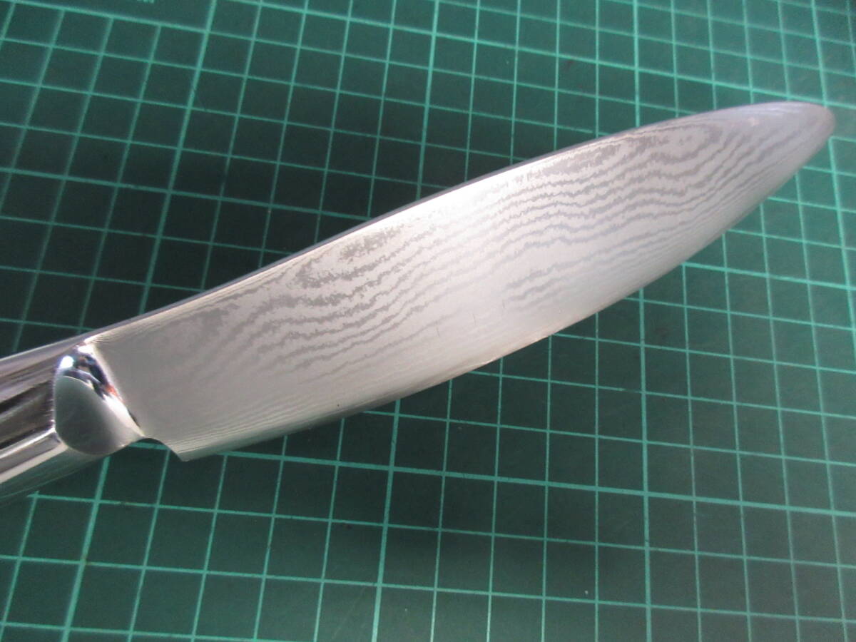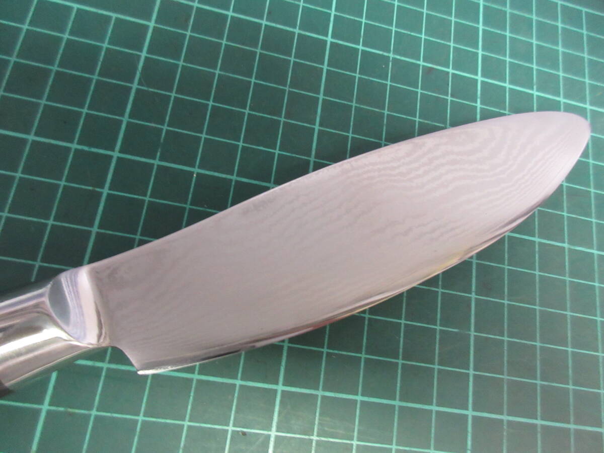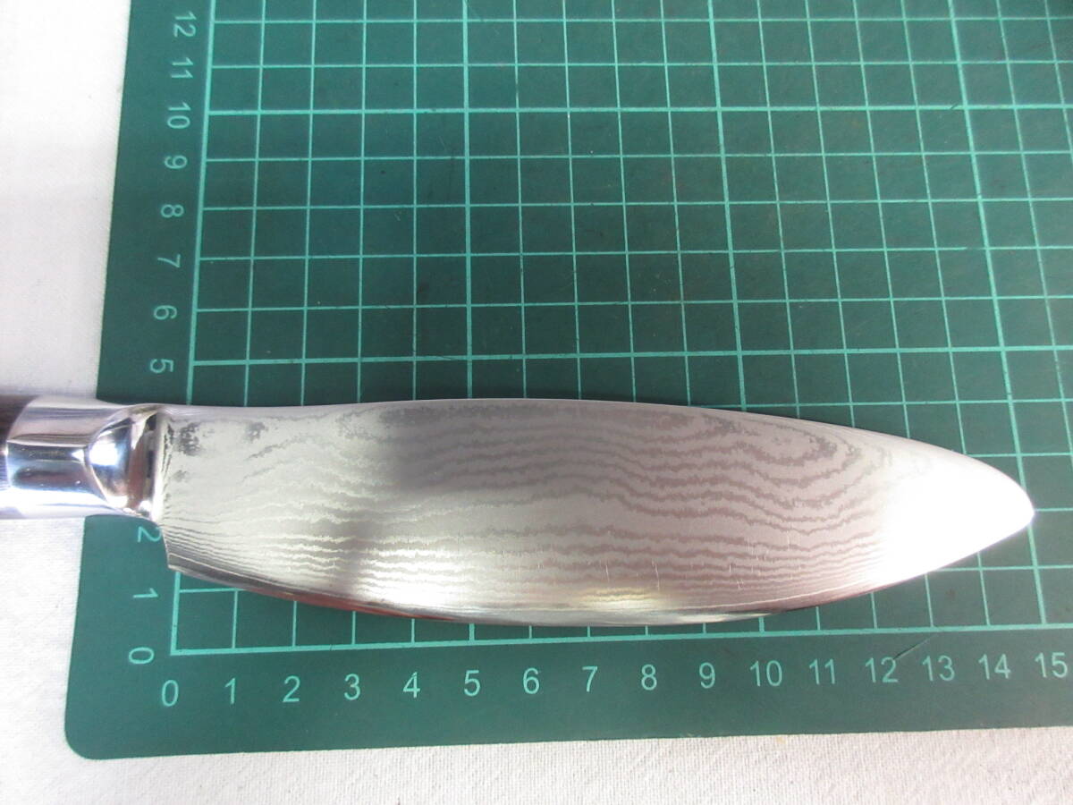 | 「受取連絡」が出来ない方の入札はお断りします。 こちらから評価を入れることはありません。 ■■■■■■■■■■■■■■■■■■■■■■■■■■■■■■■■■ ユーティリティ15cm 元は波刃ですが状態が悪かったので寿司切り包丁の様にリメイクしました。 オリジナルに拘る方は入札をご遠慮ください。 最後の写真は磨き前です。銘は消えました。 歪みや反り、落としきれない錆があります。全体的に使用感があります。 包丁のみの出品です、付属品はありません。 ■■■■■■■■■■■■■■■■■■■■■■■■■■■■■■■■■ 発送はレターパックです。(補償はありませんのでご注意ください。) 送料を抑えたい方はライト(430円)を選択してください。(ただし厚さ制限のため簡易包装です、新聞紙で包む程度ですので輸送時の衝撃で包丁の歪みや破損のリスクがありますのでご理解ください。) プラス(600円)は衝撃対策で厚めの梱包をします。(複数同梱の場合は包装が簡易になります。) 刃渡り21cmまではレターパックで発送できると思いますが長い刃は着払いゆうパックになります。 小振りな包丁なら3本くらいまでライトで同梱できます。プラスなら5本までは入ると思いますが21cm以上の包丁が絡むと本数が限られます。 以下は定型文です。 洋包丁は両刃、和包丁は片刃を前提に出品しています。 (タイトルと個別情報に刃付けの記載が無ければ上記のとおりです) 他の出品物と同梱できます。(システム上、着払いとのまとめ依頼ができません。落札後に同梱希望のメッセージを 頂ければ対応します。) 送料と材質についての質問には返答しません。 包丁につきましては全てジャンクとし、ノークレームノーリターンでお願いします。 出品からお品物が届くまでに時間が掛かった場合、鋼などの材質ですと変色や錆などの変質がある場合がございますのでご了承ください。 錆の酷い包丁は再生研磨していますが、あくまで素人仕事です。電動工具を用いての仕上げです。 削る、磨くは出来ますが歪みの修正は出来ません。中古品ですので歪みがある前提で入札してください。 磨きにより錆に強くなるメリットがありますが切った食材が張り付くデメリットがあります。 切れ味が悪いや、思ったより汚いなどのクレームはご遠慮ください。 触れば怪我をするほどの最低限の刃付けはしてあります、開封時にご注意ください。 肉眼での検品ですので微細な傷や欠けを見落としている可能性もありますので写真を参照してください。 現状維持のために防錆に椿油を塗布していることがありますので写真に不自然な艶が写っている時があります、ご了承ください。 (鋼の洋包丁の場合は中子にも塗布するために柄にも油が散布しています。ご使用前に洗浄してください。) 中子やリベットの錆を落とす為に柄ごと研磨する場合がありますので、柄に研磨痕が残っている時があります。 柄の仕上げに軽く蝋引きしています。 片刃の場合、研ぎですが砥石傷が付くのを嫌ってベタ研ぎはせず、峰をわずかに浮かして仕上げています。(綺麗な裏押しの和包丁はベタ研ぎです) 10対0ではなく9対1位の感覚です、完璧な片刃をお求めの方は入札をご遠慮ください。 (和包丁は片刃前提です、洋包丁が片刃の場合にはタイトルと個別情報に片刃と記載してあります) 有効利用、再生利用できる方の入札をおまちしています。 写真で判断いただき、商品説明を理解出来る方のみ入札をお願いします。 クリーニングなどはせず、写真のままお送りします。 専門知識が乏しい為、質問に答えられない時があります。 ブランド品の真偽については不明とさせて頂きます。 素人による中古出品です、すり替え防止の為にもノークレームノーリターンでお願いします。 入金を確認しました時点でお取り置き終了と判断し発送準備にはいります。 同梱発送、お取り置きを希望の方は入金前に連絡頂くと助かります。 落札後、48時間以内の初回連絡、五日以内の入金が確認出来ません場合は落札者様都合のキャンセルとさせて頂きます。 その場合落札者様に非常に悪い評価とブラックリストへの登録を同時に行いますのでご了承ください。 (以後こちらのオークションに入札が出来なくなります) #お取引に不安を感じる評価の方は削除させて頂く事があります。 #総合評価が高くても直近に悪い評価がある方も削除致します。 #いたずら入札を防ぐ為、1万円以上の入札額時の場合は新規の方の入札をお断りします。 #(どうしても入札したい時は質問欄より入札意思をお伝えください。) *評価を入れて頂くと反射的にお返しする形を取っています、不要の方は評価を入れないで下さい。 *こちらから評価をお付けすることはありません、不要の方は「受取連絡」で終了して下さい。 自己紹介欄もあわせてお読みください。 | ||