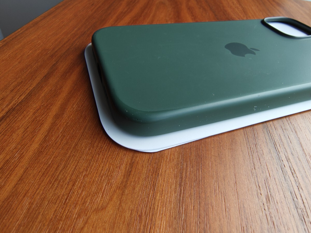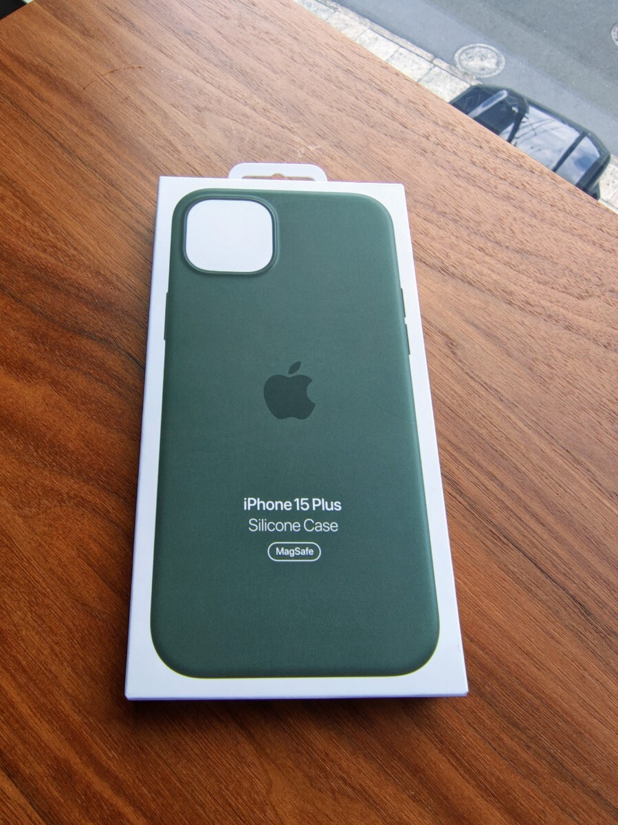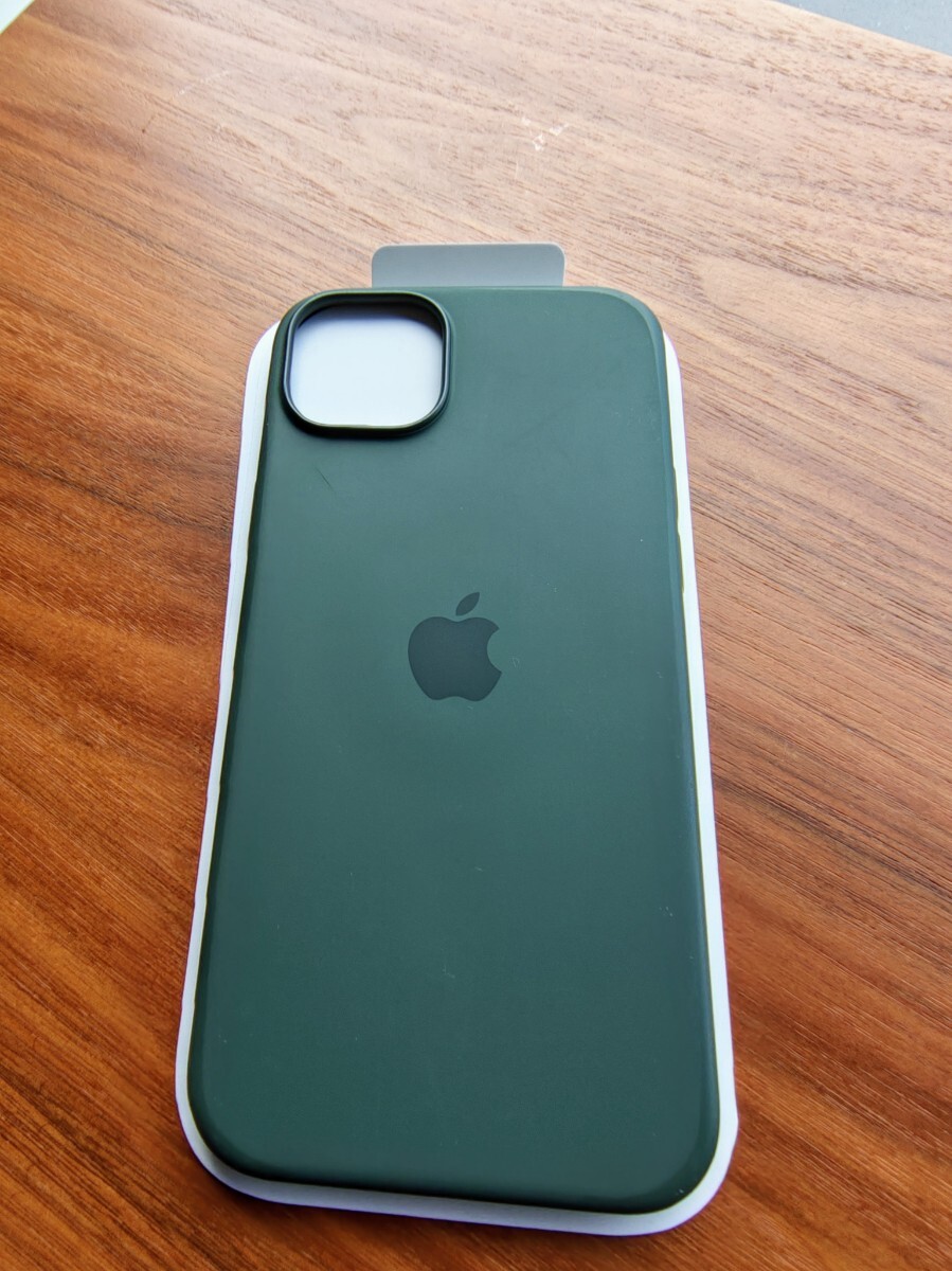 iPhone15PLUSの純正シリコンケースです。カラーはサイプレス。