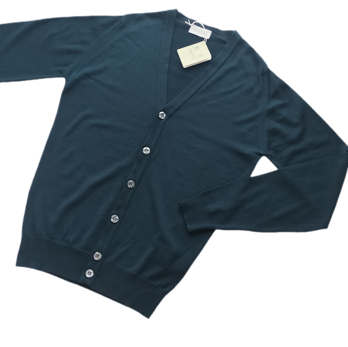 メンズ S ジョンスメドレー 最高級メリノウール 24G Vネック カーディガン BURLEY 深緑色 ORION GREEN★