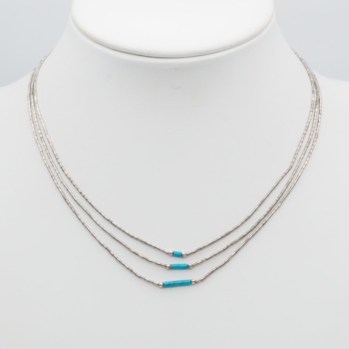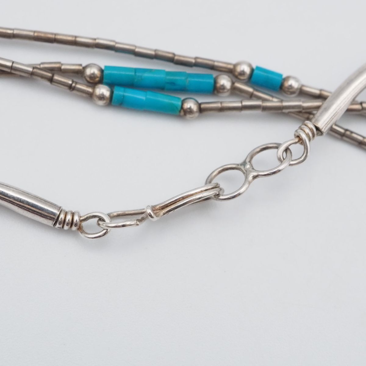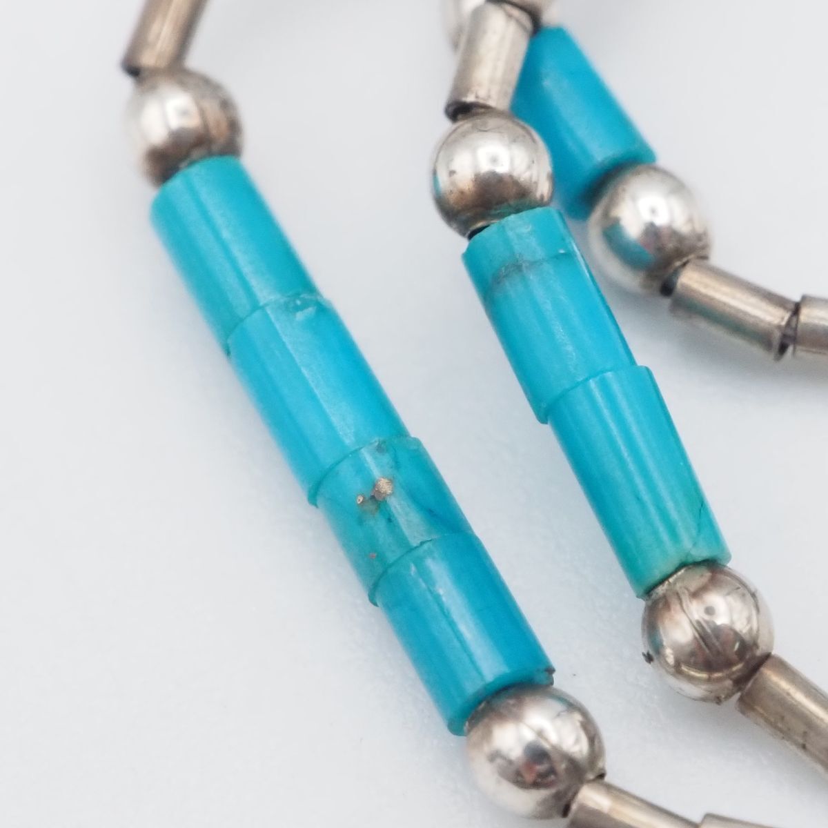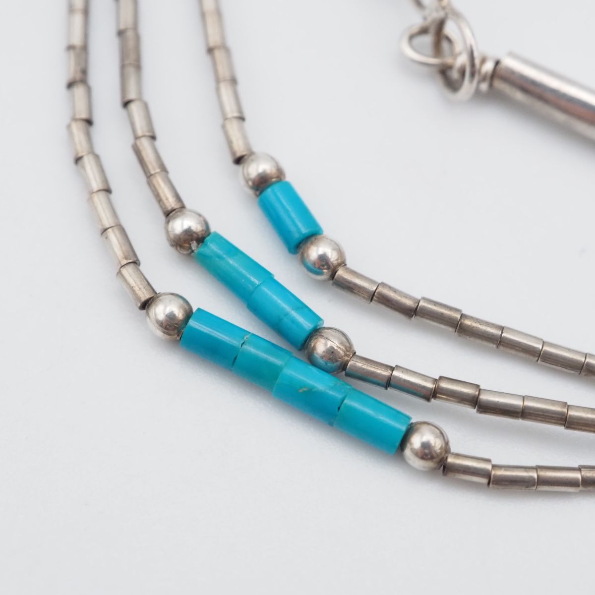 F642 ターコイズ トルコ石 シルバービーズ STERLING刻印 ネックレス 3連 デザイン シルバー ヴィンテージ 12月誕生石