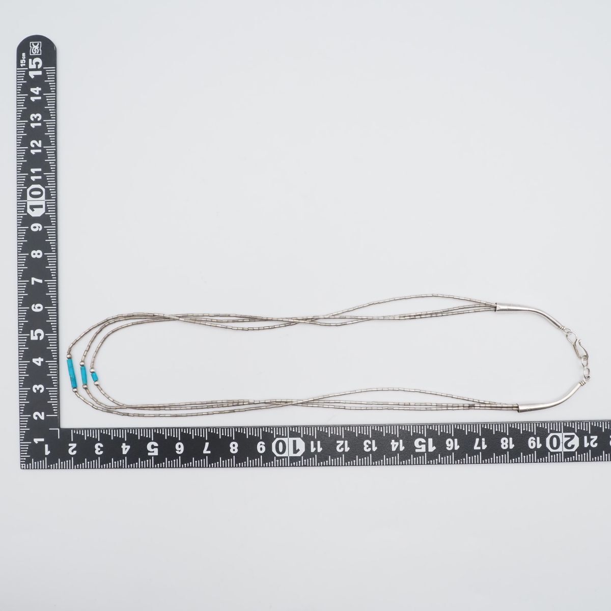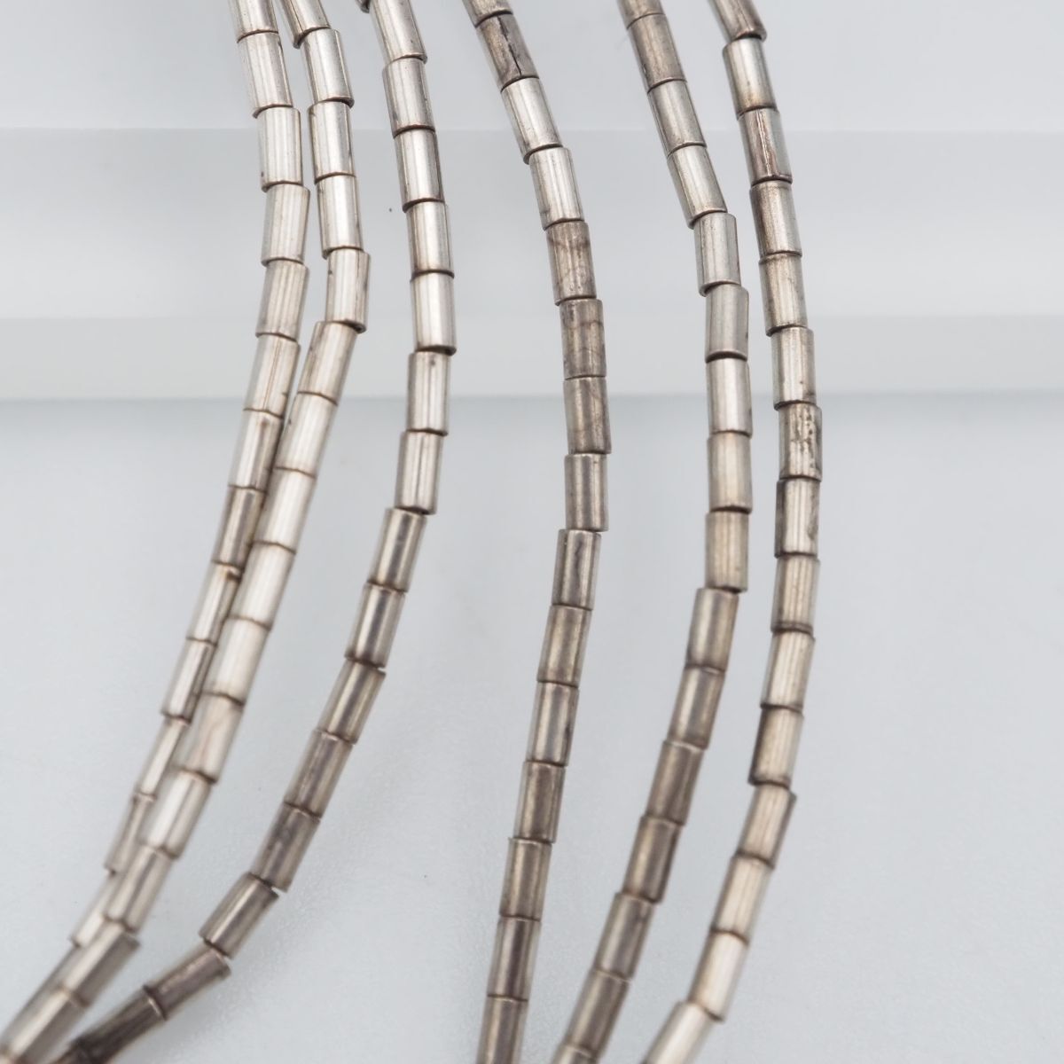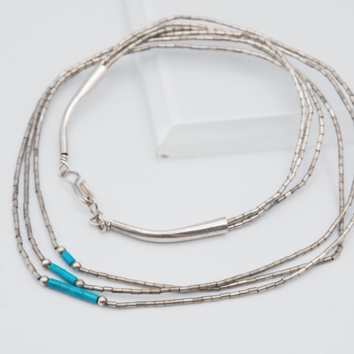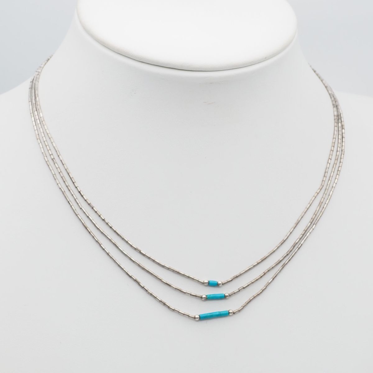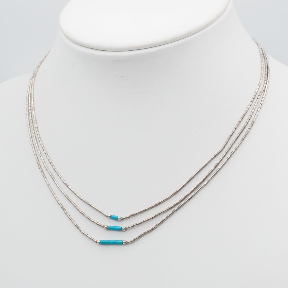 F642 ターコイズ トルコ石 シルバービーズ STERLING刻印 ネックレス 3連 デザイン シルバー ヴィンテージ 12月誕生石