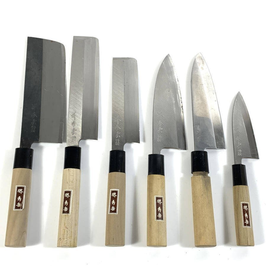 堺秀岳/三代隆久 包丁まとめ売り6本セット 出刃 薄刃 菜切り 刃渡り10.5~16.5cm*現状品