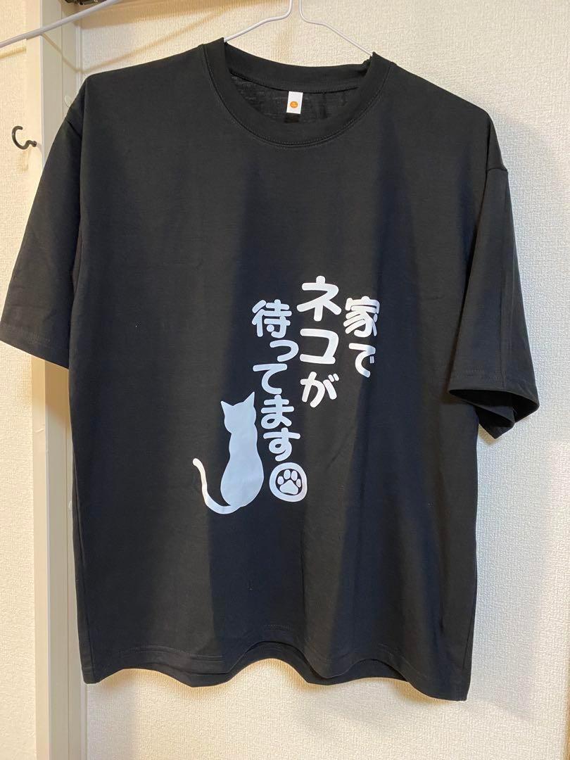 猫好きにはたまらない!カジュアルブラックTシャツ。猫の面白シャツ