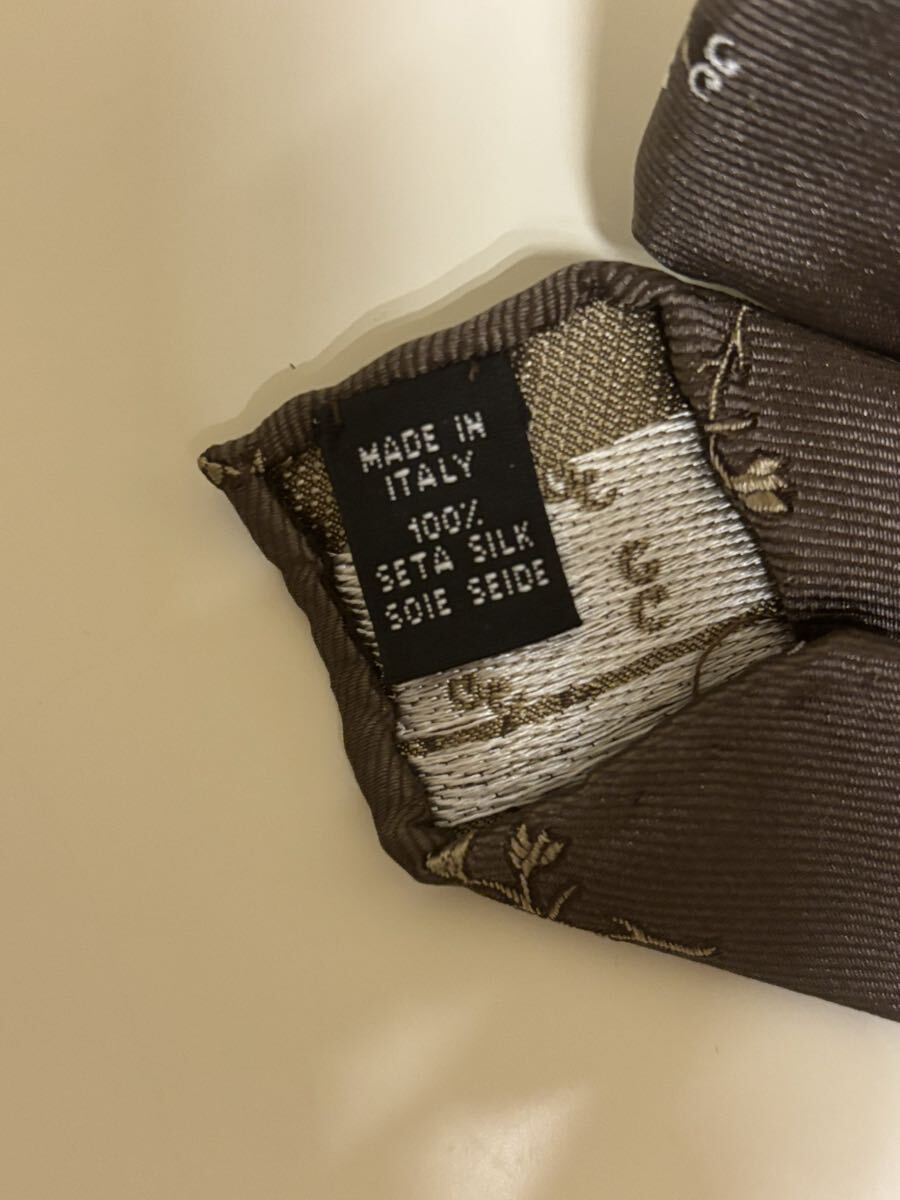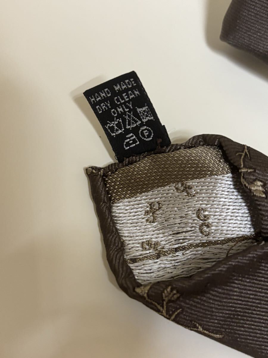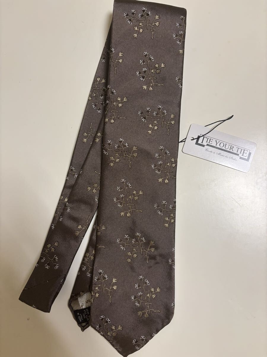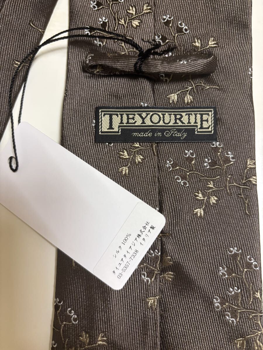 タイユアタイのブラウン花柄ネクタイ、シルク素材。