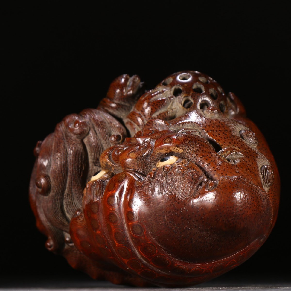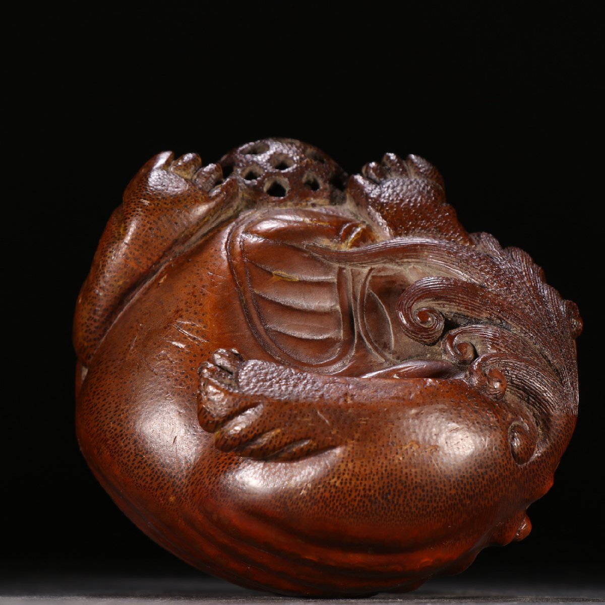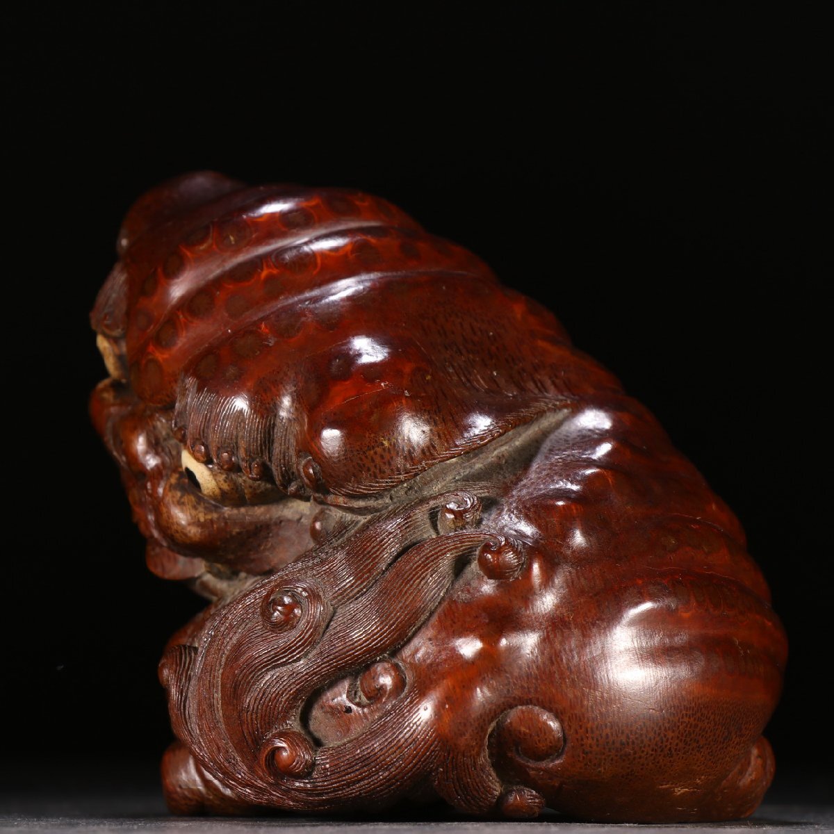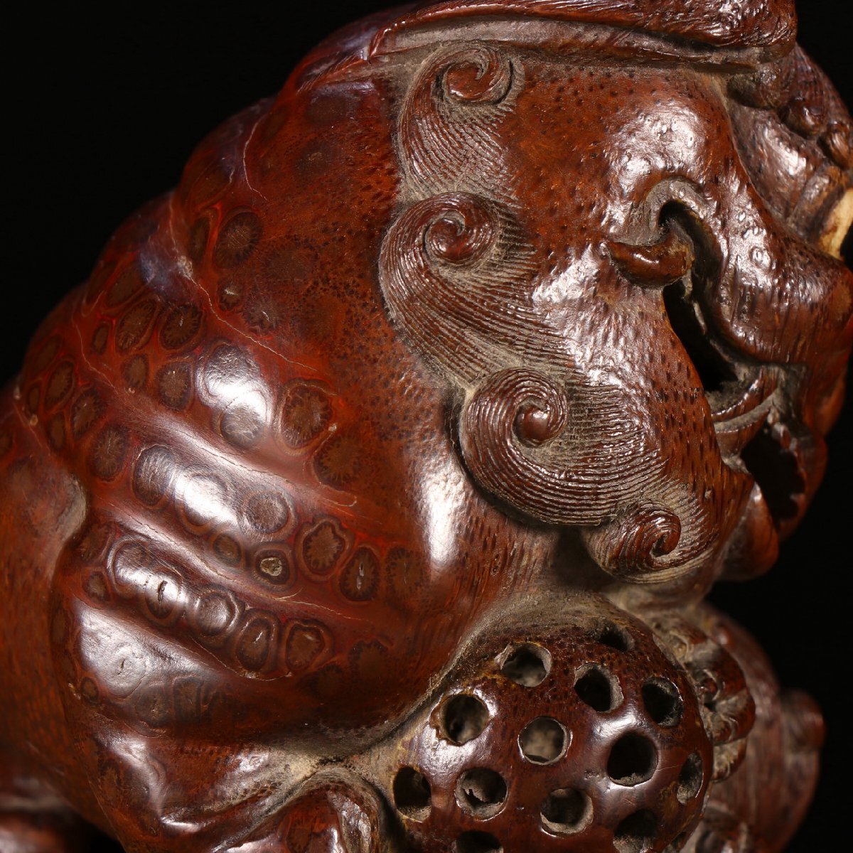 【清】某有名オークション購入 清時代 古竹彫 唐獅子紋置物一双 材質保証 当時物保証 古置物 古擺件 古美術 時代コレクション7L9-BB2