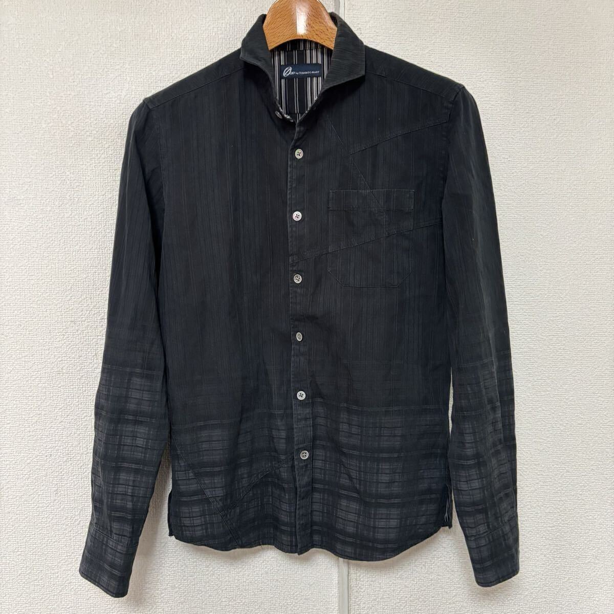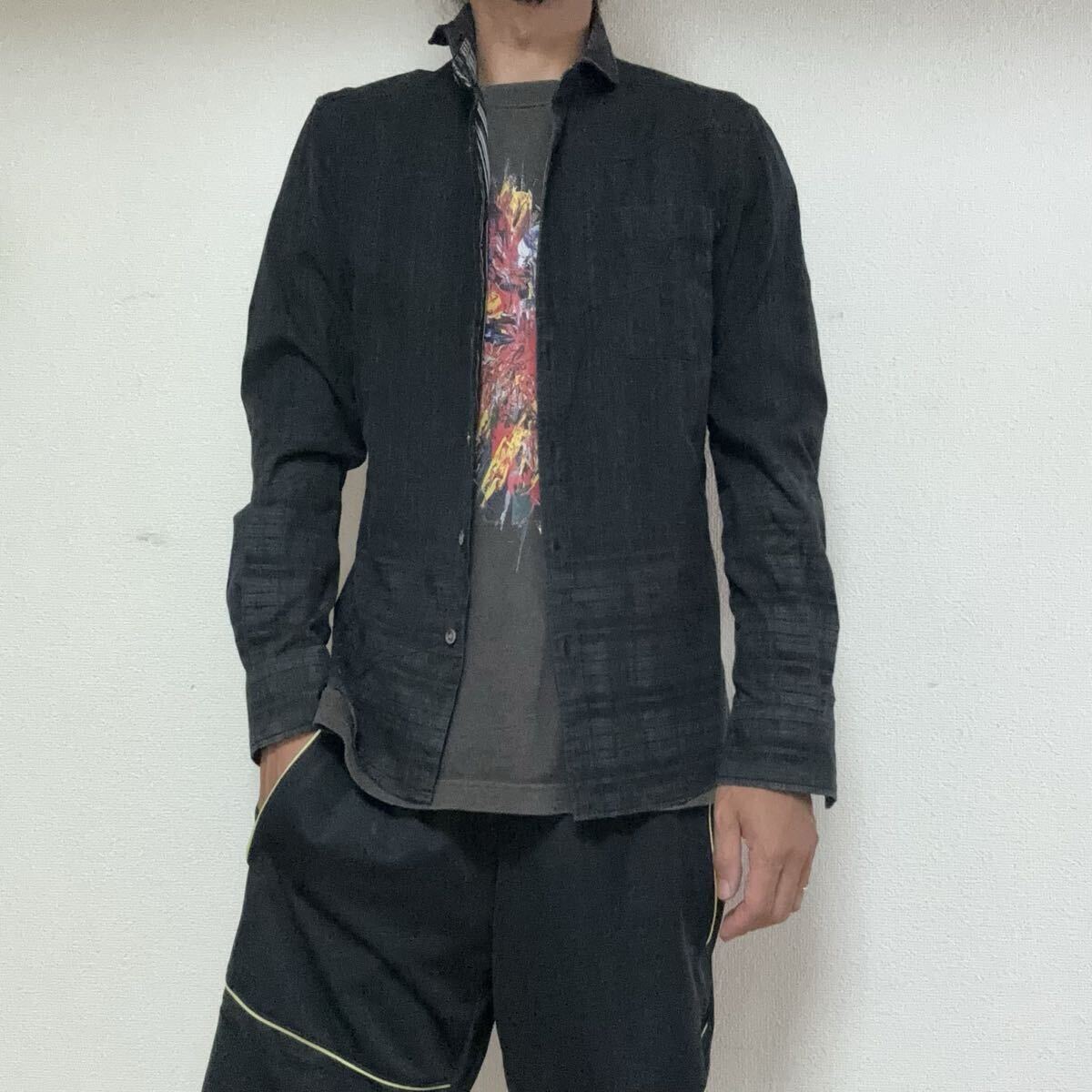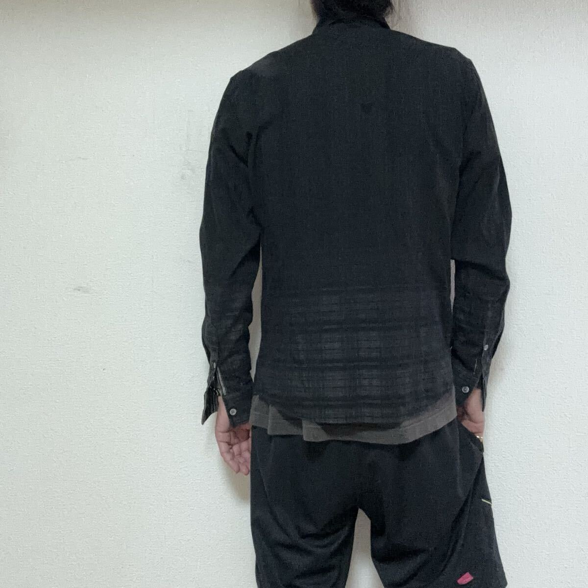 ブランドらしいタイトなシルエットでブラックからチェックのグラデーションのデザインが目を惹きますが全体が織になっていて表情があり裏もストライプになっていて抜かりないデザインもクールな一枚です。