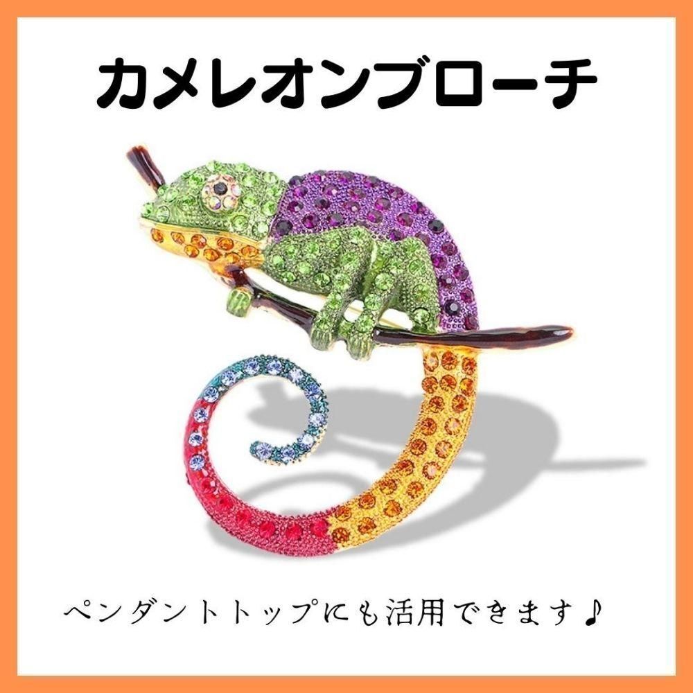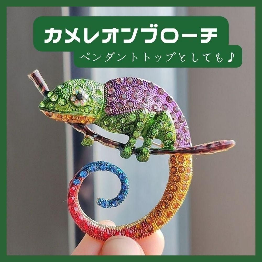 ペンダント カメレオン 爬虫類 動物デザイン 個性的アクセサリー ブローチ兼ペンダント アニマルデザイン キラキラ ラインストーン カラフル 961