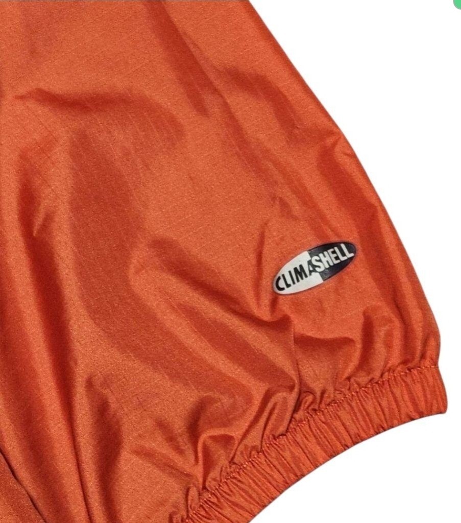 鮮やかなオレンジにブラックの切替が映えるデザインで、Y2K・ストリート系コーデにもおすすめ。