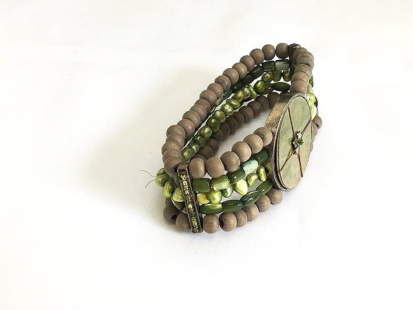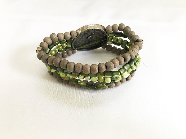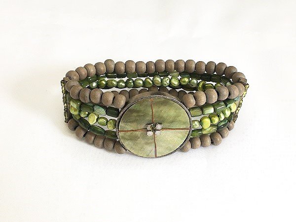 ブレスレット ビーズ ウッド アジアン エスニック ナチュラル ジュエリー/グリーン×ブラウン系/1円スタート/AY